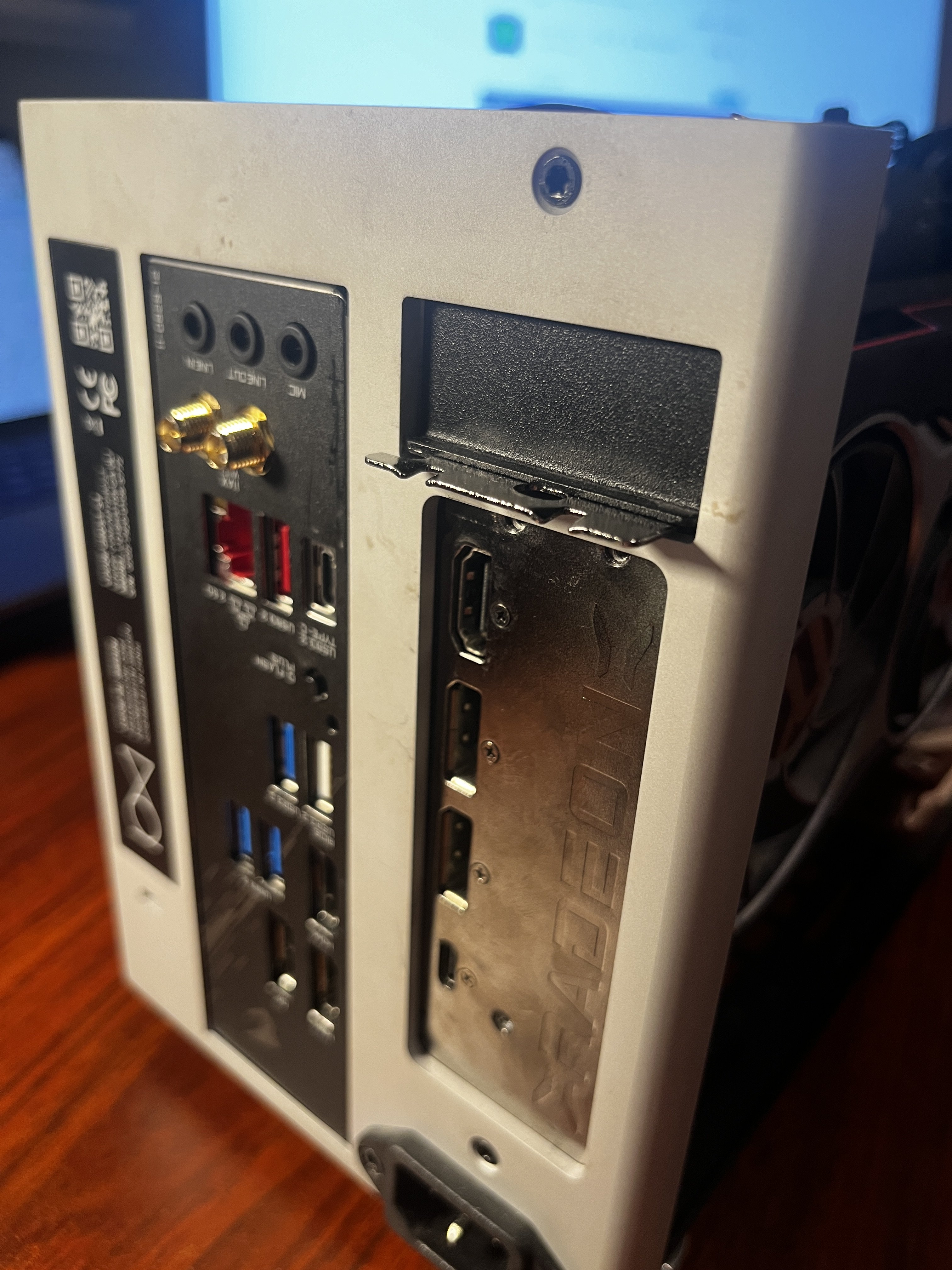 Ich habe beide Seitenpanäle abgezogen, die Verkabelung gelockert und der PC ging zumindest wieder an und ich komme in Windows. Habe dann LAN Kabel, Display Port Kabel und Antenne für BT hinten angesteckt.