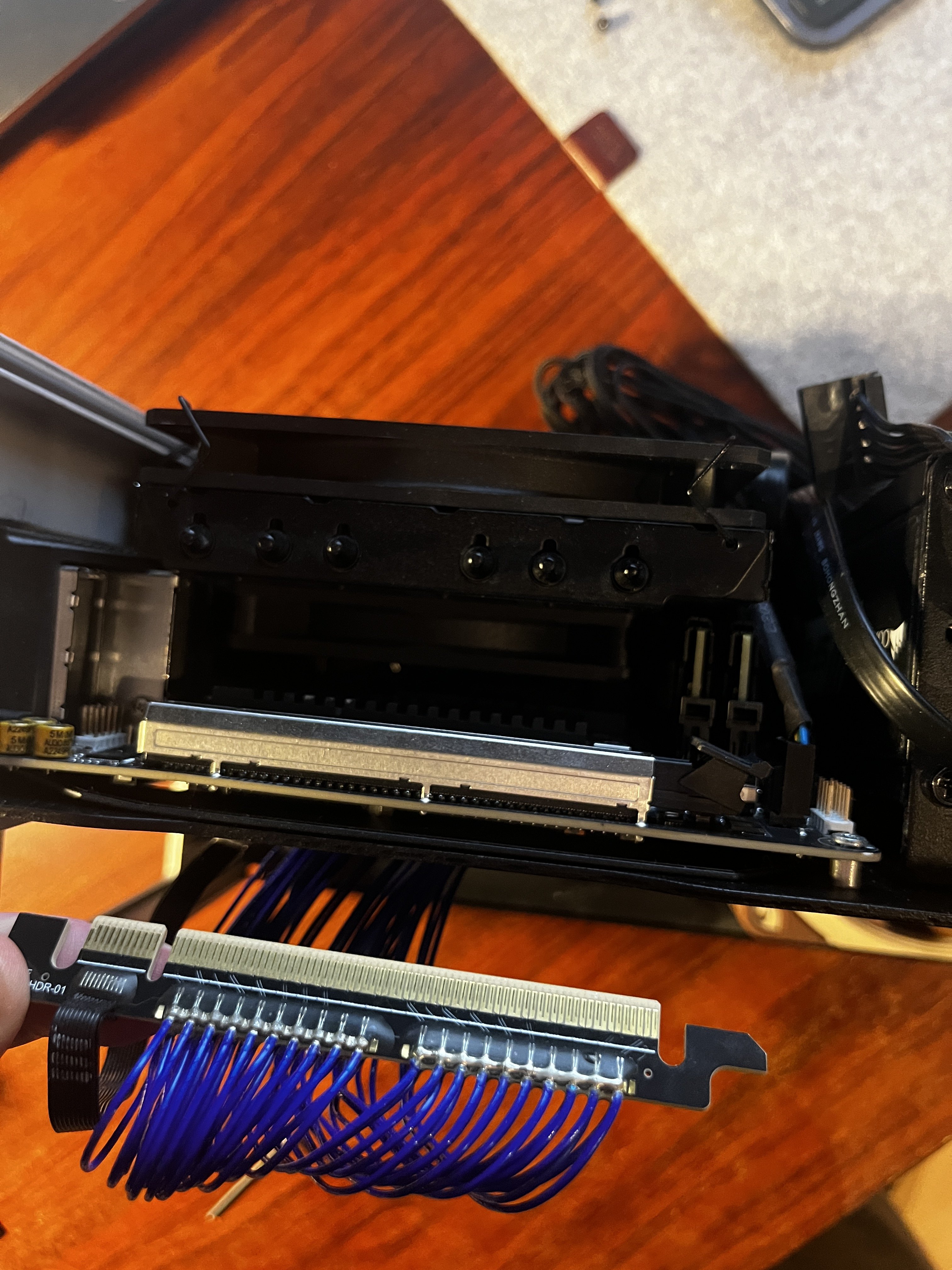 Die Grafikkarte ist mit einem Riser-Kabel angeschlossen. Das ist auch eine Fehlerquelle.