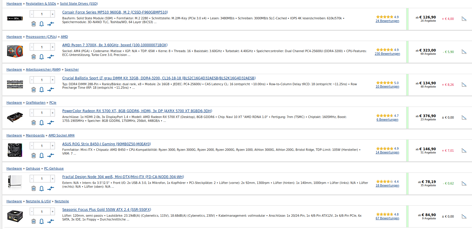 ich möchte mir ein AMD Mini-ITX bauen, als Basis habe ich die 1500€ Konfiguration hiervon https://www.computerbase.de/forum/threads/der-ideale-mini-itx-gaming-pc.1408442/ herangenommen.