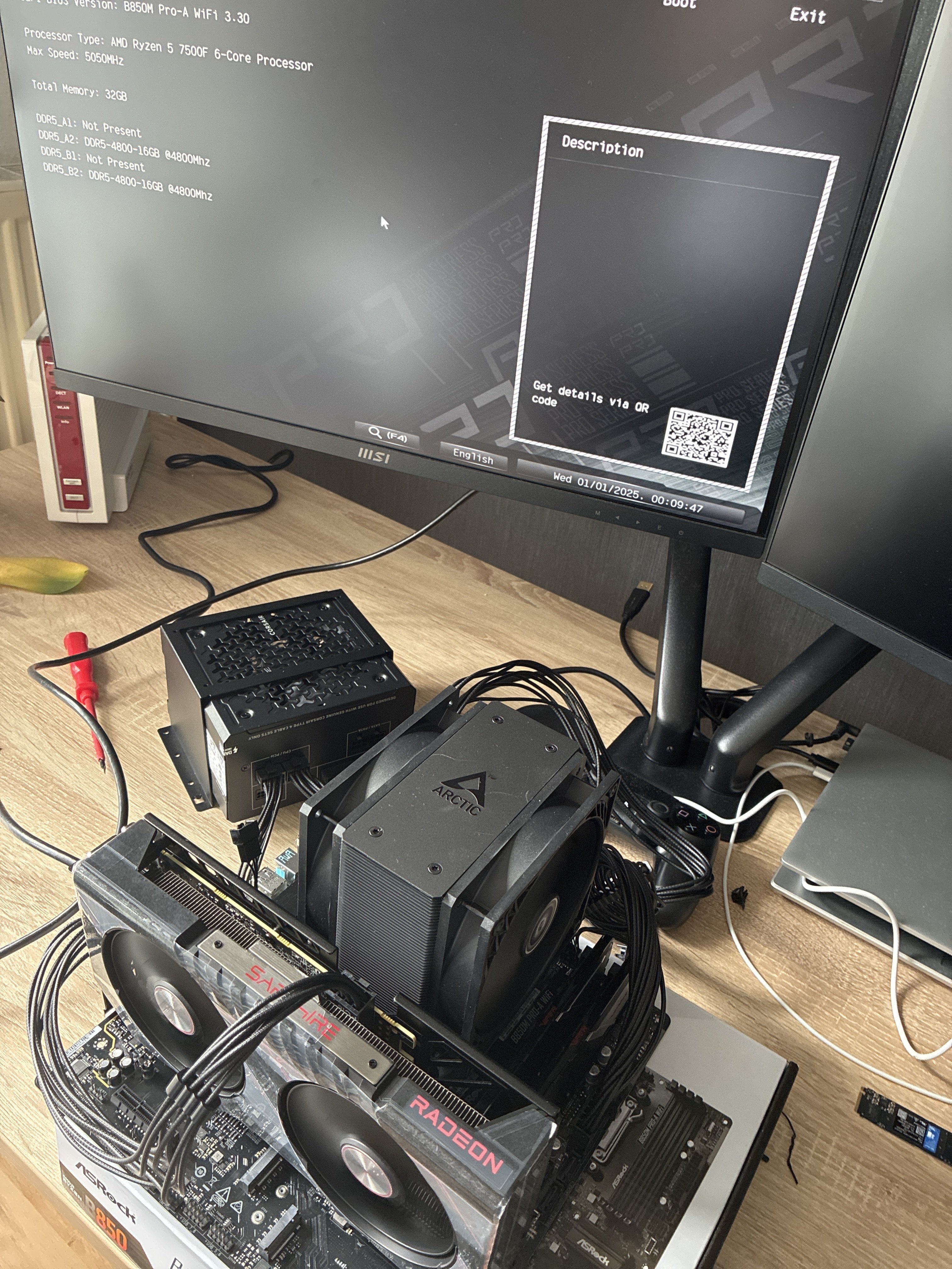 Aktuell ist alles im Case, die Windows Installation läuft. Konnte im BIOS aber nicht kucken ob alles i.o weil er meine BT Maus und Tastatur nicht erkennt. Zum Glück bootet er direkt mit angeschlossen Stick, welcher im Vorfeld schon so eingerichtet war das alles eingestellt ist.