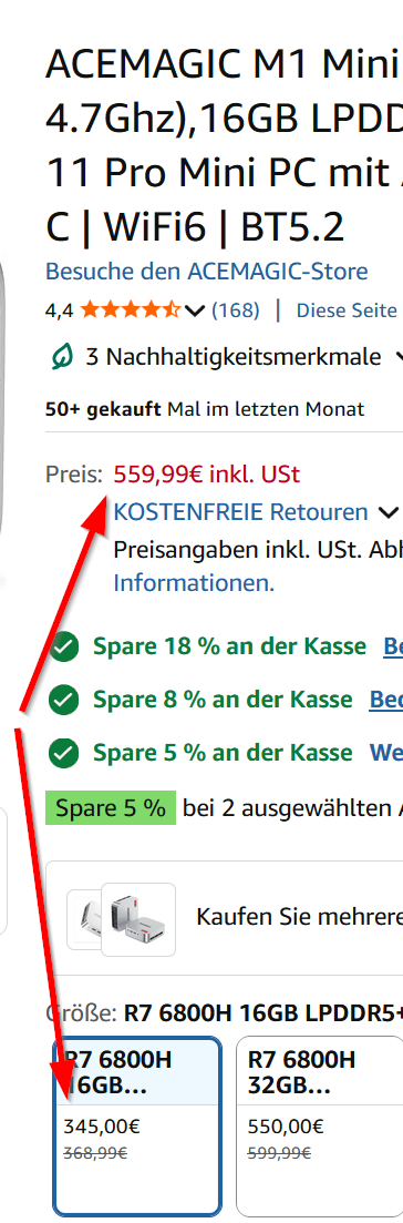 Mir wird der ACEMAGIC für 345,00€ angezeigt.