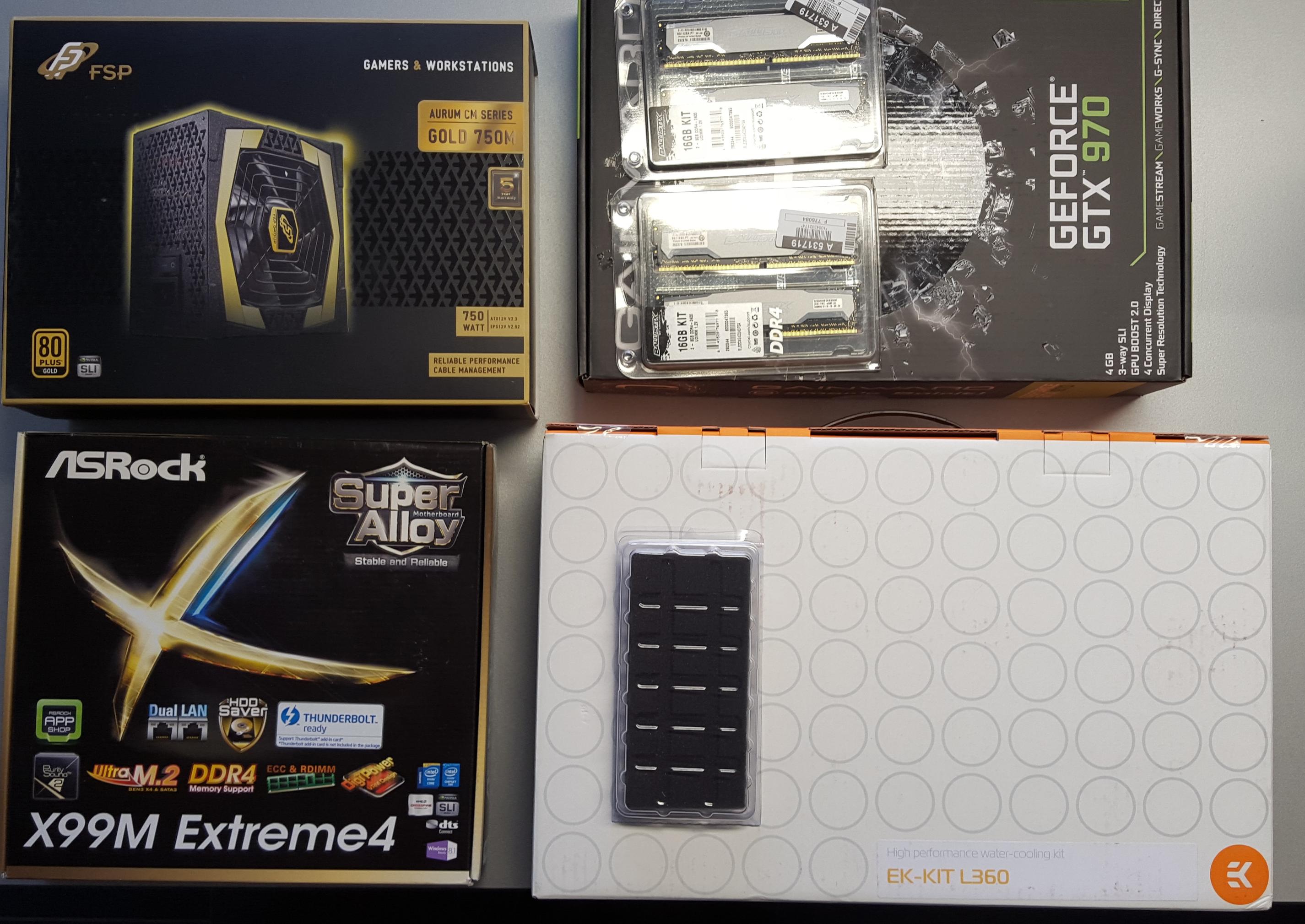 Einige Abende später und nach viel Recherche war mir klar, ich gehe auf ein Sockel 2011-3 System. Als µATX war das Mainboard schnell gefunden. ASRock X99M Extreme 4. Dieses MB bietet eigentlich alles was ich brauche. Besonders der "Ultra M2" Steckplatz ist interessant. So kann ich demnächst auf eine schnellere SSD gehen. 8 Ram Slots wären noch Nice gewesen, bei µATX aber leider nur ein Traum.