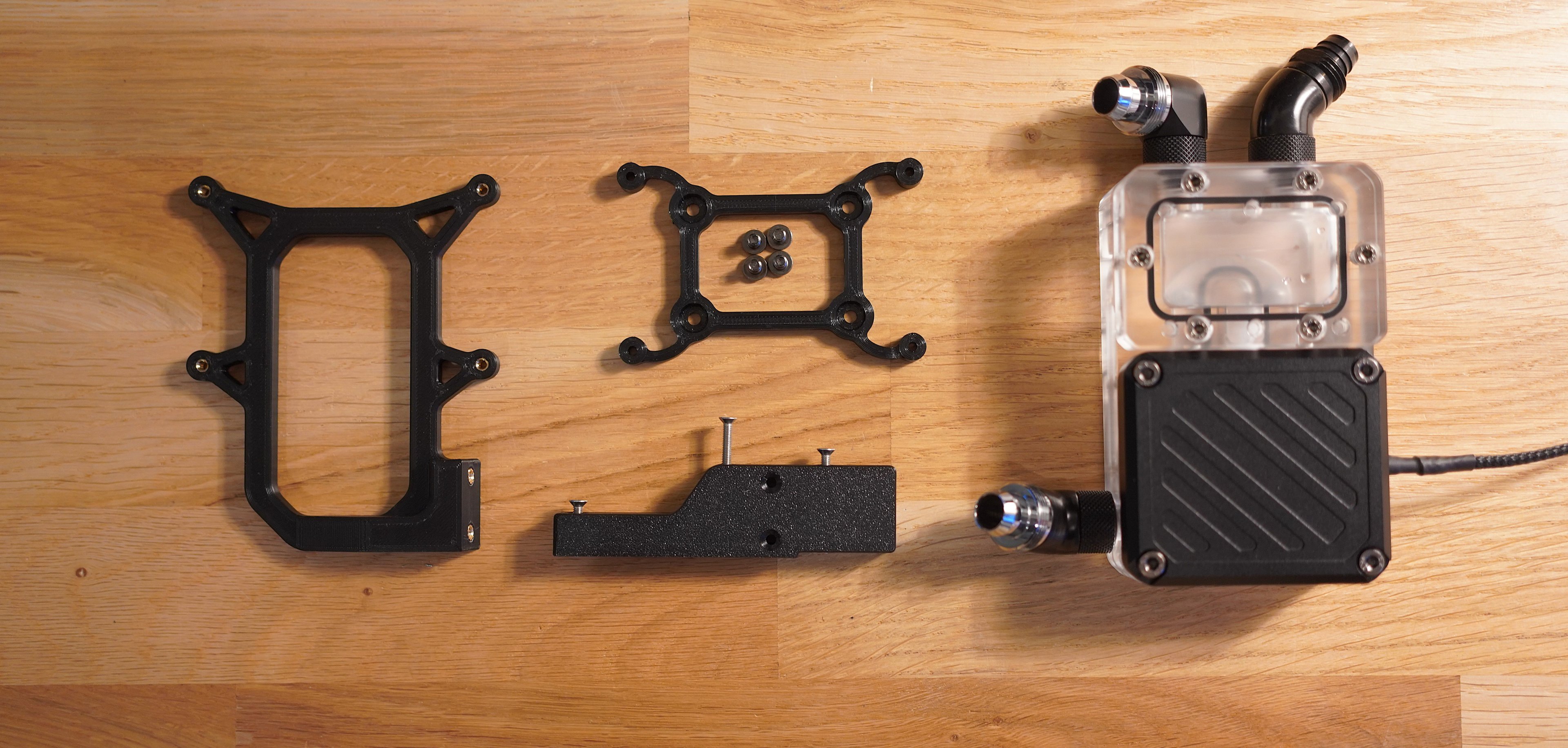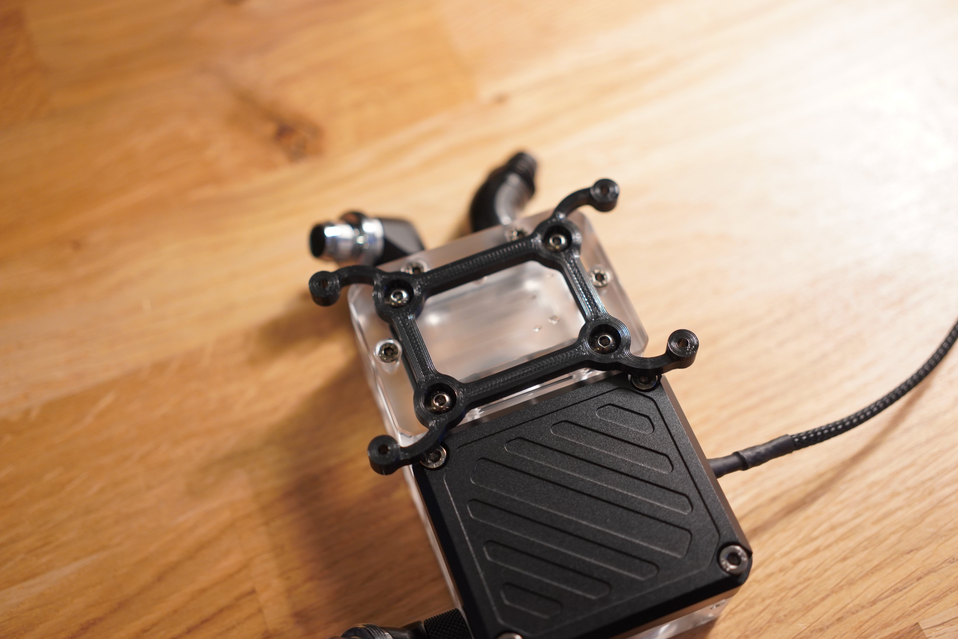 Die gesammte Halterung besteht nur aus drei Teilen und ein paar Schrauben, was die Montage sehr einfach macht. Theoretisch könnte man ein Plastikteil noch eliminieren, aber so gehen die Schrauben von hinten in den Plastik Rahmen, was es sehr einfach mach die Pumpe mit nur zwei Schrauben von außen zu demontieren. [IMG]https://www.computerbase.de/forum/attachments/dsc01942cr-jpg.1642075/?hash=aafac5b4bbfe485edbe4532af6e50f8b[/IMG]