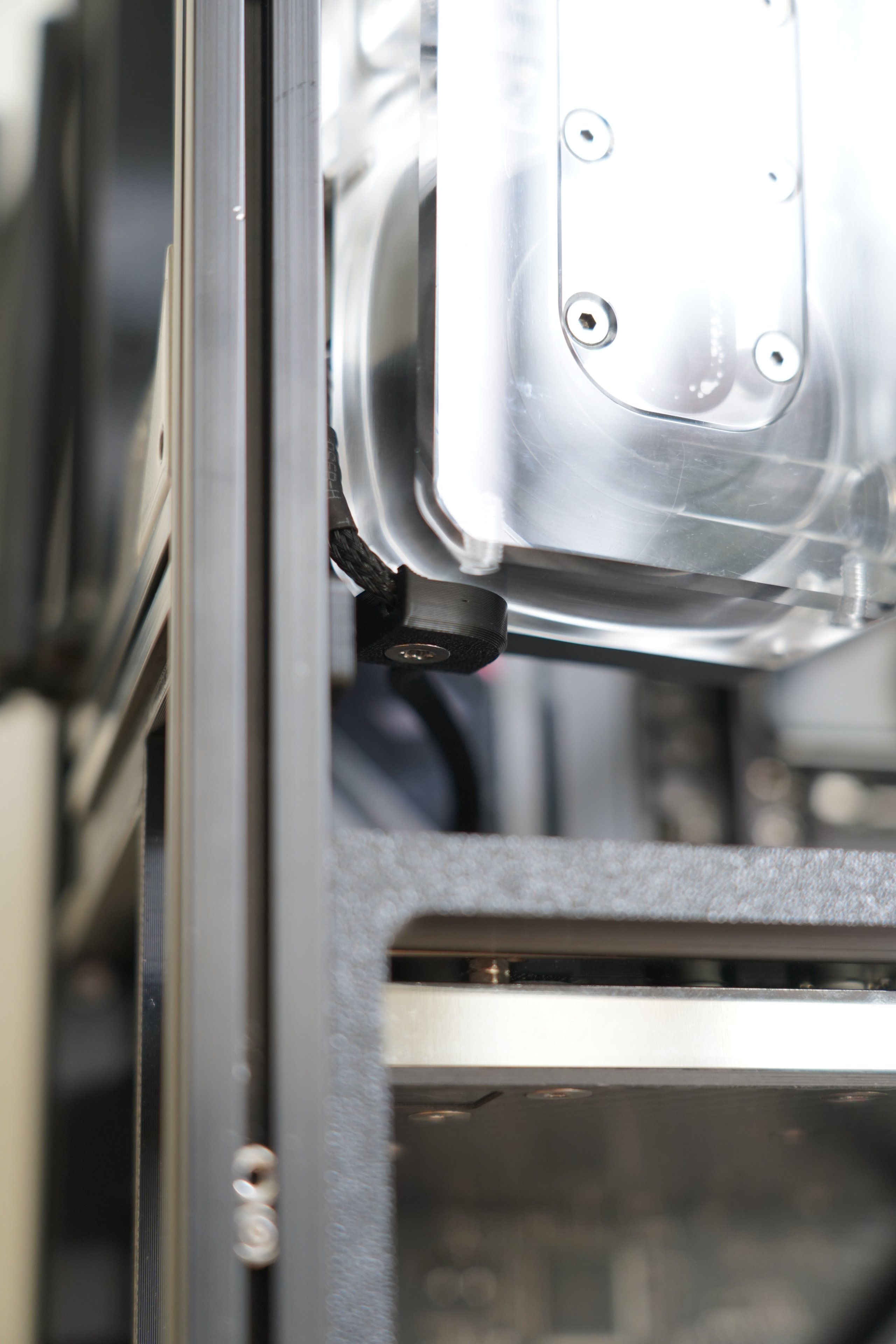 Nach ein paar Iterationen der Halterung habe ich sie endlich in meine PC gepackt. Ich habe auch noch eine zuätzliche Halterung gedruckt, die das Kabel von der Pump nach Hinten leitet ohne mit den Gehäuse zu kollidieren, leider hilft das nicht beim einstecken des Kabels, was ziemlich nervig ist. Vileicht muss ich dafür auch noch was drucken