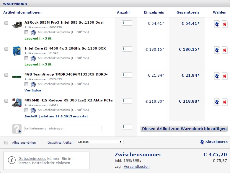 ich würde gerne meine alte Kiste wieder etwas flotter machen. Mittlerweile sind die Komponenten über 5 Jahre alt und (bis auf eine neue SSD) merke ich doch langsam das es bei Spielen eng wird.