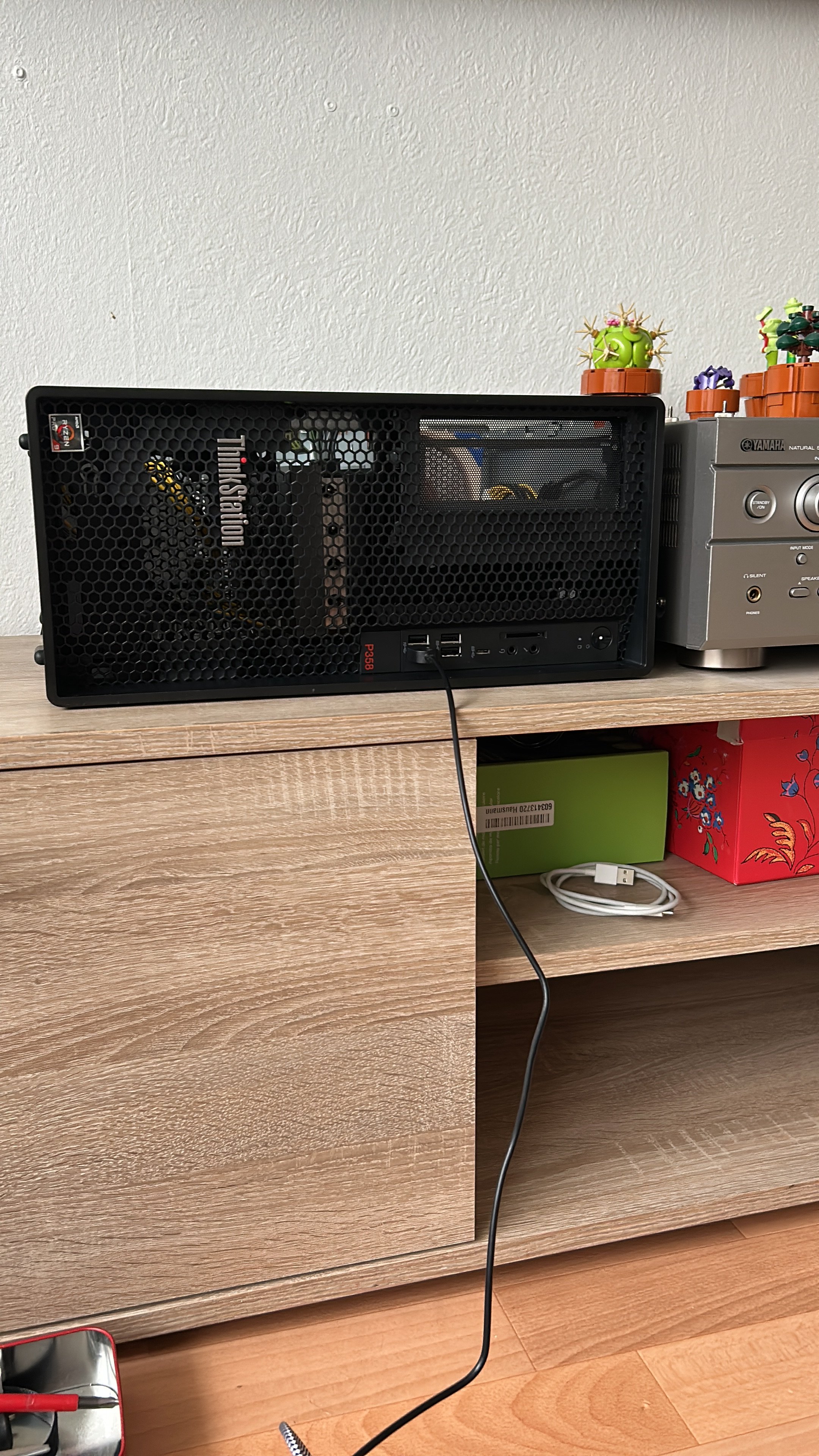 Dafür habe ich heute meine Lenovo Kiste im Wohnzimmer auf/umgebaut und zum ersten Mal in meinem Leben minecraft gespielt 🤣🙈