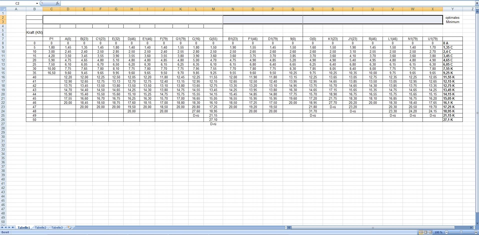 - Zellen C8 bis X8 vergleichen
