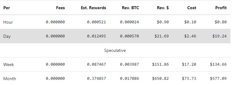 Vorallem 10 Cent "Cost", bezieht sich ja auf die KW/H. Kannst das Ganze also nochmal durch 3 rechnen. Sind wir schnell wieder bei nur 7€~