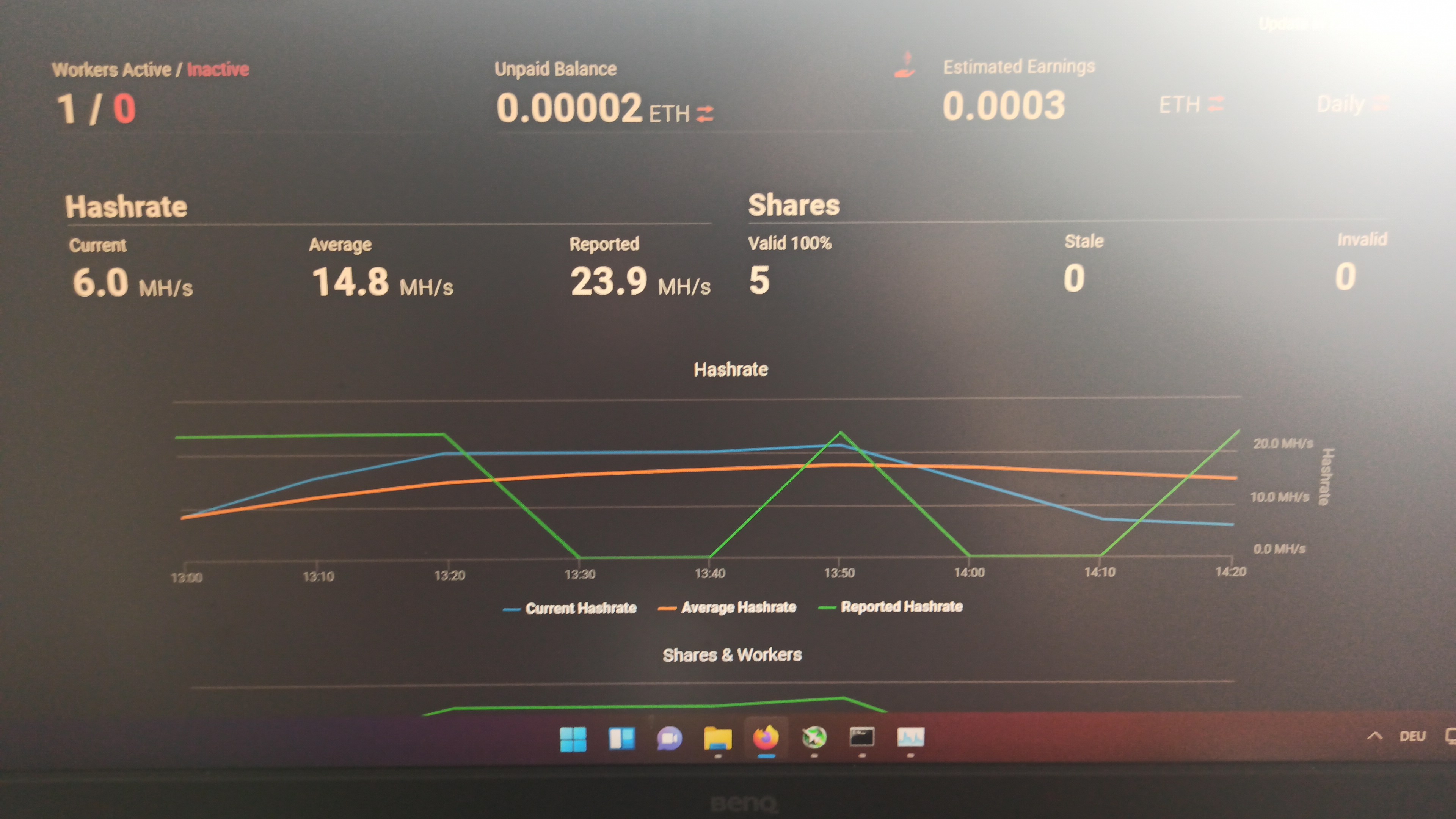 ich habe miner.exe heruntergeladen und eine Wallet mit MetaMask erstellt.