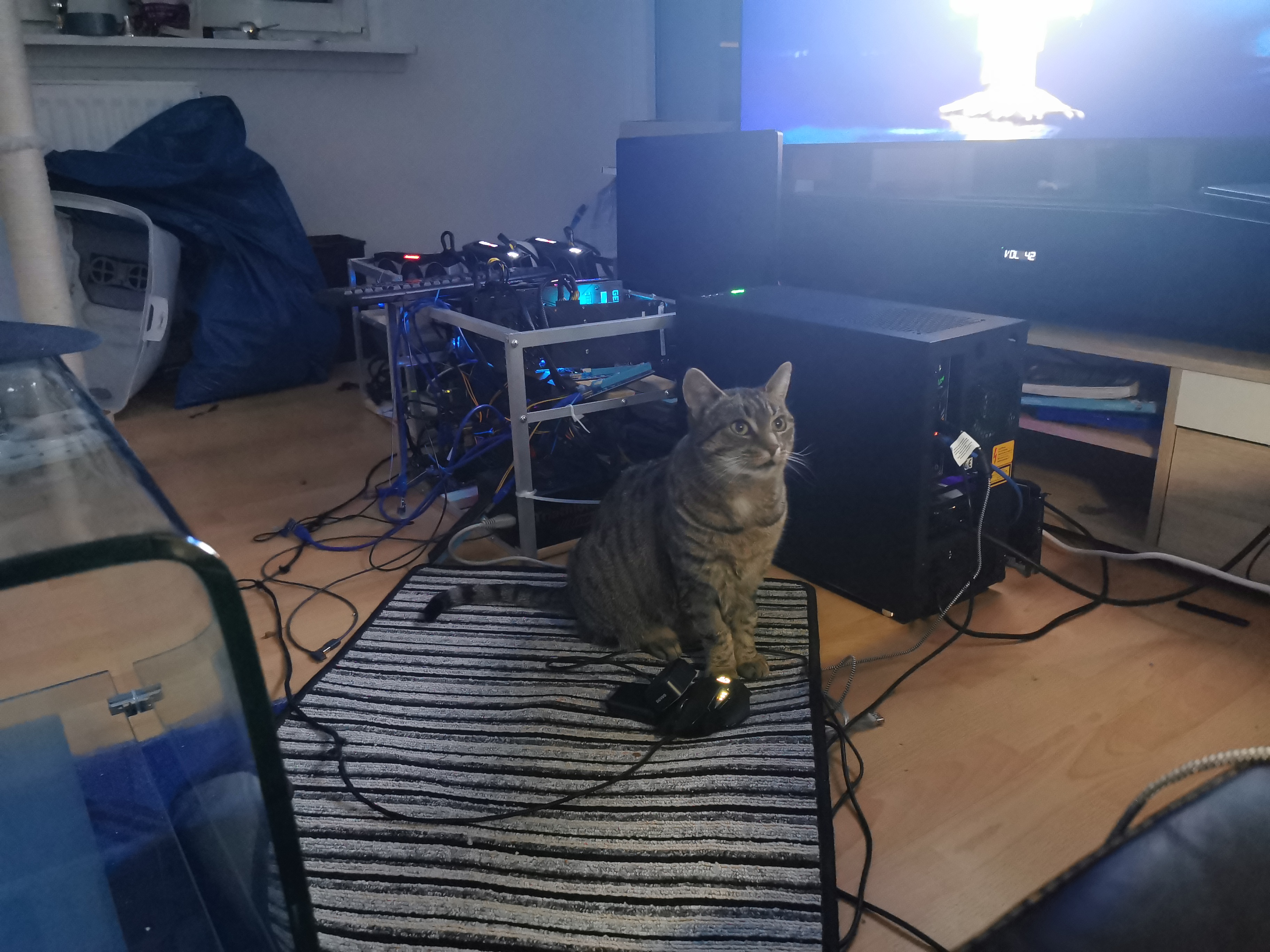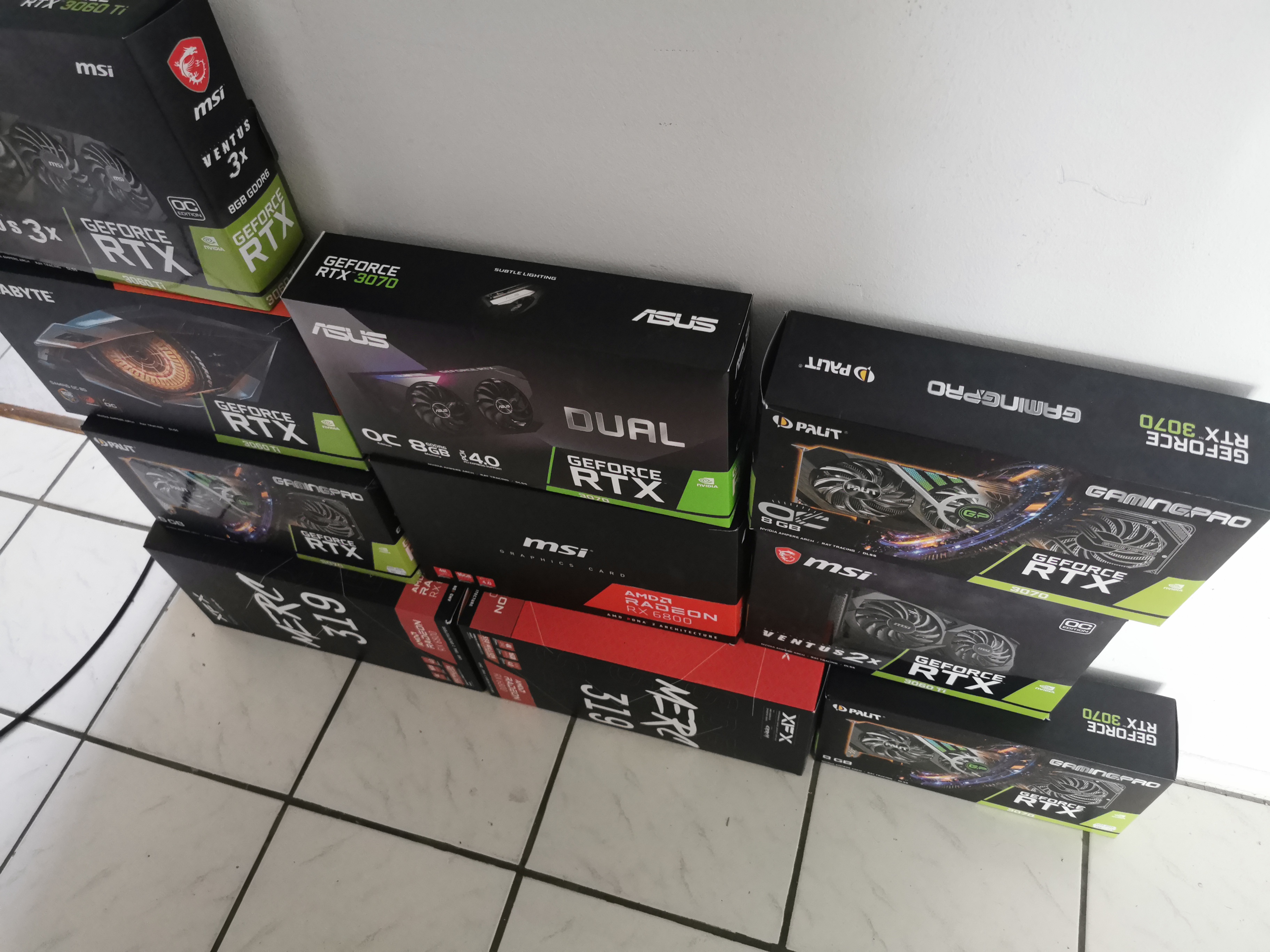 Mine mit aktuell 10 Karten (4*3070, 3*3060 Ti, 3*RX6800) und heute kommen noch 2 3070er dazu.