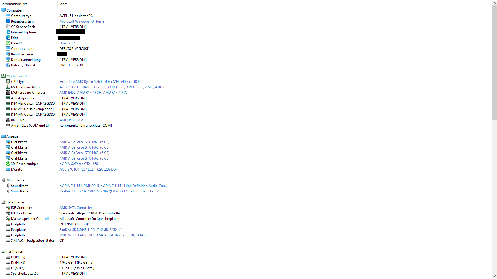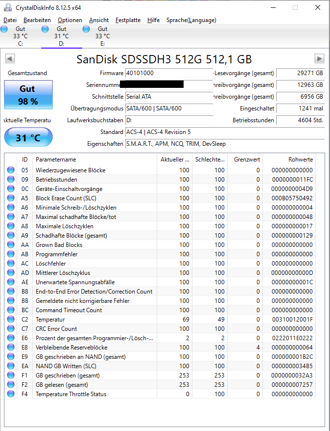 Hier eine Daten zu meinem Rechner: