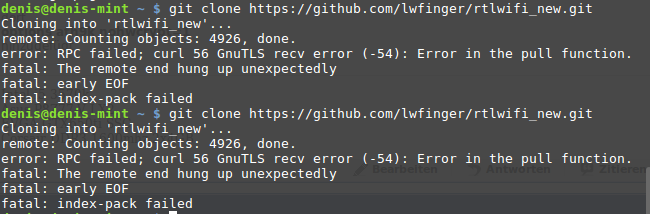 Im Mint forum wurde empfohlen erstmal alles zu updaten so habe ich das gemacht, über apt-get update install und upgrade (hat ewig lange gedauert (70kbs)).