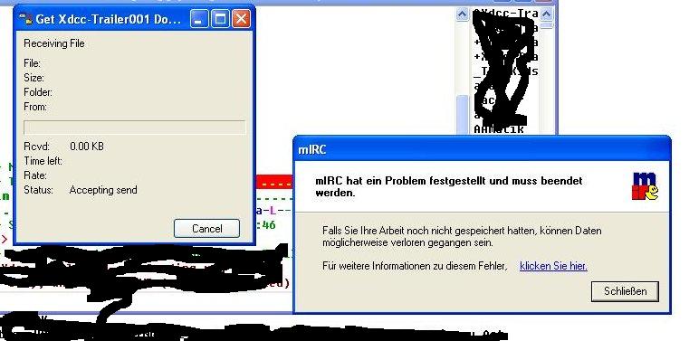immer wenn ich versuche etwas mit Mirc herunterzuladen kommt die angehängte Fehlermeldung. Ich hab schon lange bei Google gesucht, aber nichts gefunden. Woran liegt das?