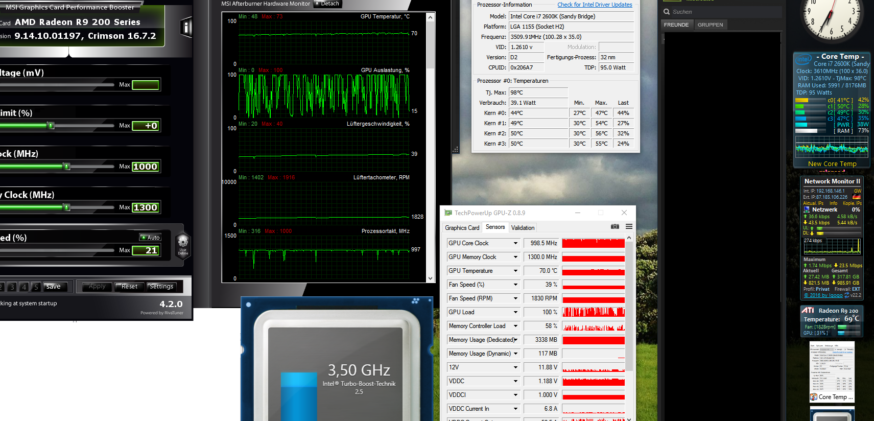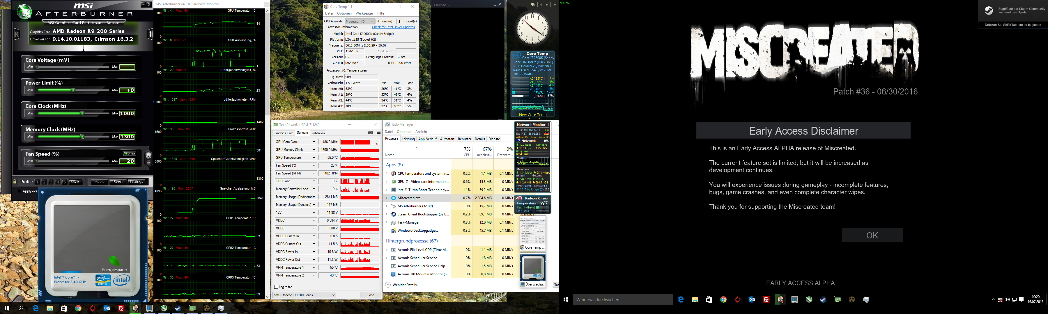 Also habe ich alle Grafikeinstellungen auf mittel runter gesetzt von Ultra. In Ultra hatte ich so um die 45-50fps, in mittel so bis 60fps. Geholfen hat es aber nicht. Den Treiber der Graka habe ich auf Version 16.7.2 aktualisiert. Auch keine Besserung. Die restlichen Treiber sind auch alle top aktuell. Zu heiß wird die CPU/GPU auch nicht.