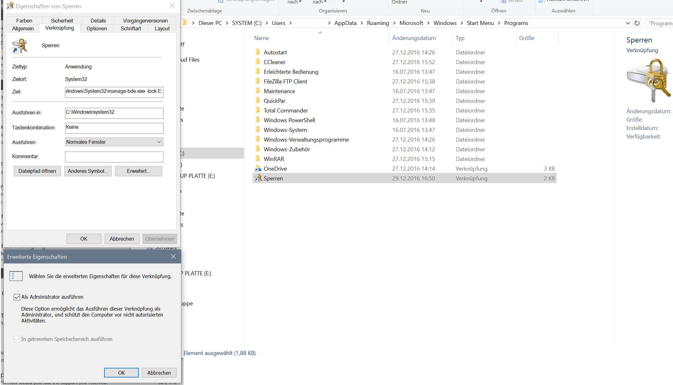 Oder Verknüpfung mit diesem Befehl und als Administrator ausführen lassen.