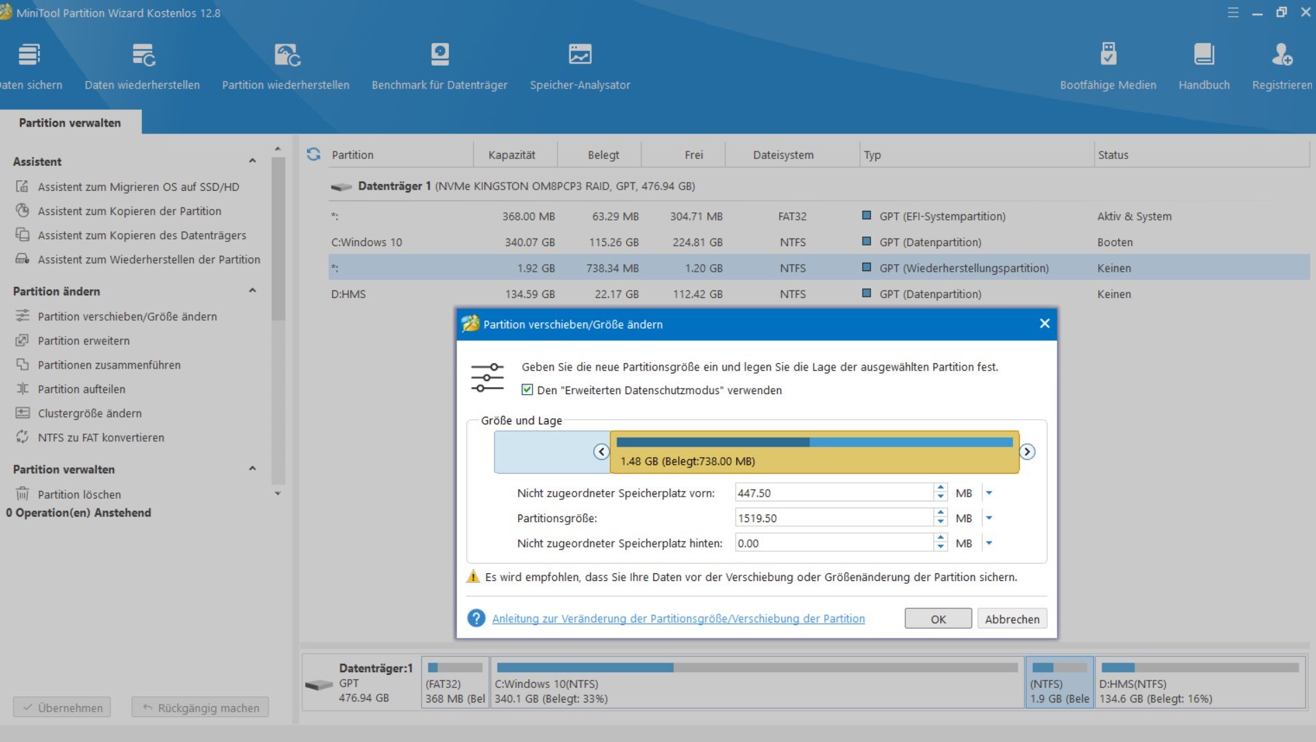 Zuletzt Rechtsklick auf E: und Volumen vergrößern mit den voreingestellten Werten übernehmen. Auf OK und die Sache ist vom Tisch.