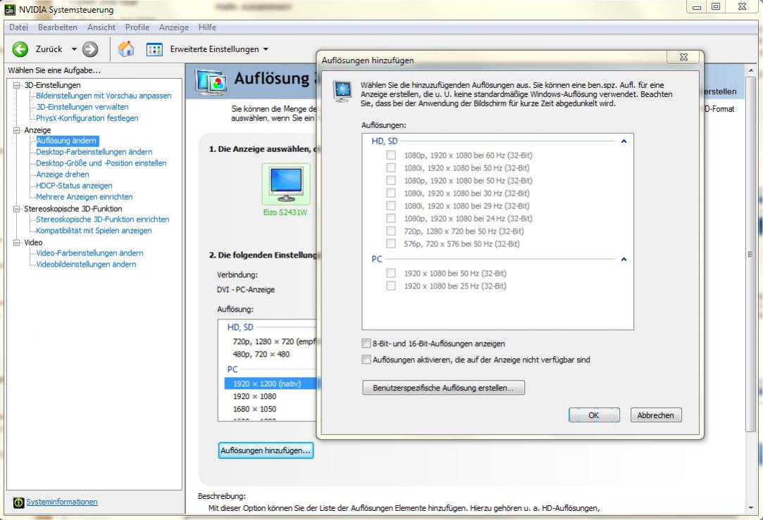 Habe letztens einen BluRay-Brenner verbaut und das Problem, dass ich am TV nicht wie bei der PS3 das Signal "1080/24p" erhalte sondern nur "1080p". Irgendwie scheinen also die 24p zu fehlen und das stört mich! Deshalb würd ich gern wissen, ob die evtl nicht übertragen werden können, weil mein PC über n DVI auf HDMI Adapter mit dem TV verbunden ist... also nicht direkt per HDMI.