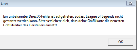 Meine Grafikkarte ist kaputt also muss ich die integrierte Grafikeinheit verwenden. Wenn ich ein Lol spiel starte bekomme ich allerdings folgende Fehler Meldung. habe windows heute erst neu installiert.