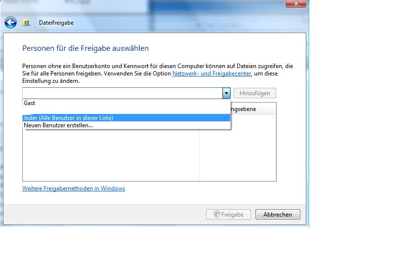 Ich habe jetzt ein Ordner "Player" freigegeben. Bild_1, dabei habe ich "Jeder"-gewählt.