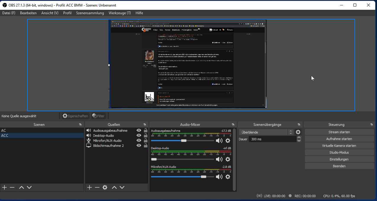 Ich dachte mir erst so...das kann ja in OBS nicht so schwer sein, dass man den Bereich aufnimmt.