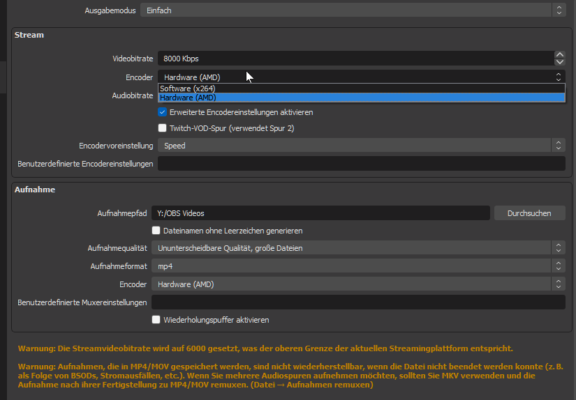 Welche Einstellungen in OBS hast du ausprobiert?