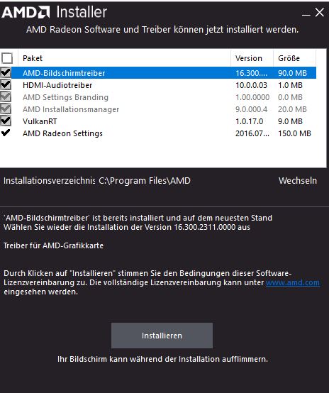 Hast du die VCE Unterstützunh während der AMD Crimson Treiberinstallation installiert?