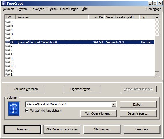 Die 2. Partition war mit Truecrypt verschlüsselt.