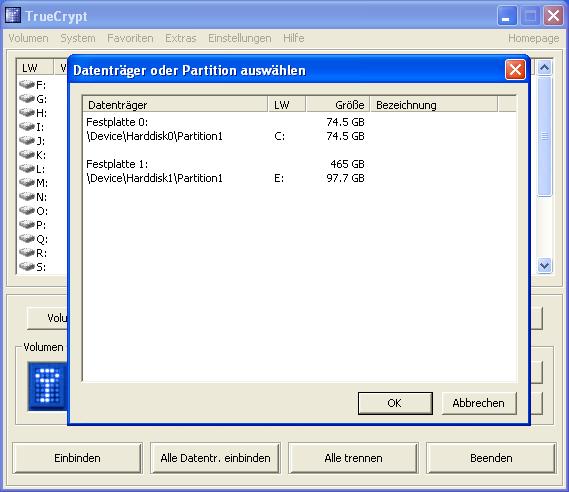 Deshalb hab ich die Festplatte ausgebaut und Extern an einen anderen PC angeschlossen, dann mit TrueCrypt eingebunden. Hat auch geklappt, aber es wird nur die erste Partition angezeigt.