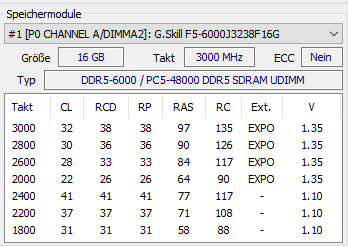 Mein verbauter Arbeitsspeicher ist der hier: https://www.mindfactory.de/product_...hwarz-DDR5-6000-DIMM-CL32-38-38-_1466607.html mit 6000 MHz.