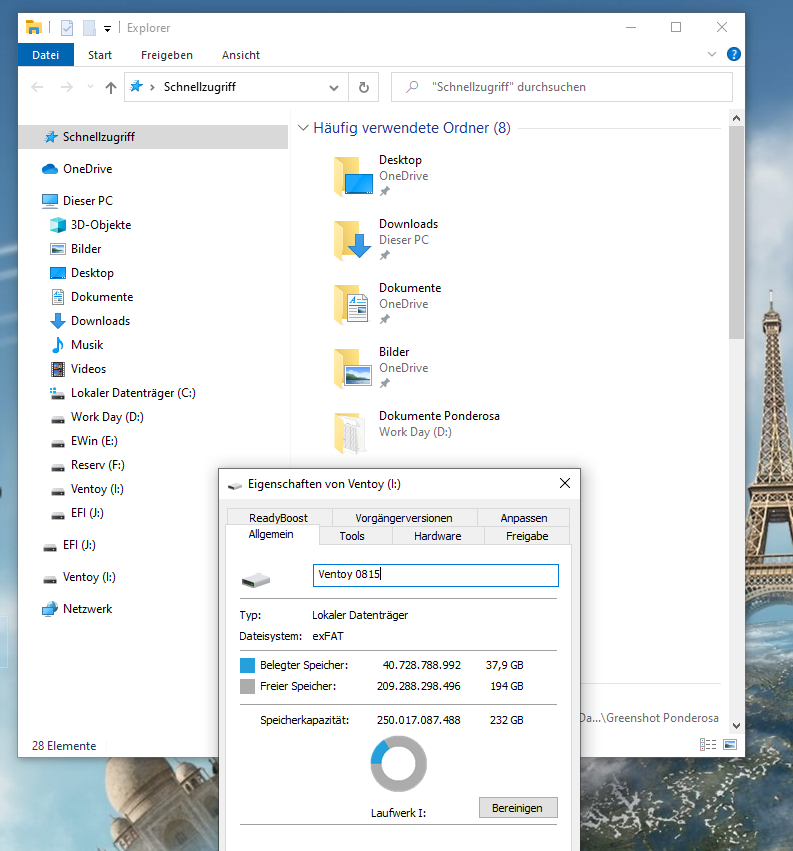 Allerdings wird der Stick an dem neuen Rechner meiner Eltern angezeigt, kann aber nicht booten. Also wenn ich aus dem Bootmenü vor dem Start den Stick auswähle, dann springt er per kurzem Blinken einfach zur Auswahl zurück und ich kann wieder wählen zwischen Stick und Platte.