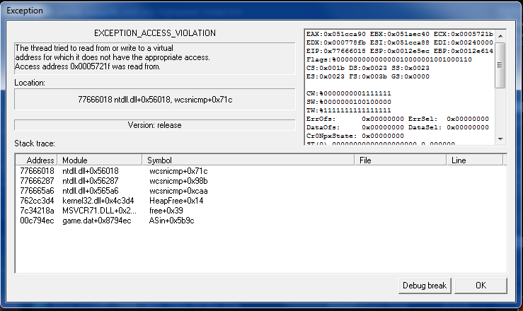 Und noch ein Problem: Wenn Ich das Spiel starte kommt nach endlosen Minuten des Warten folgende Fehlermeldung: