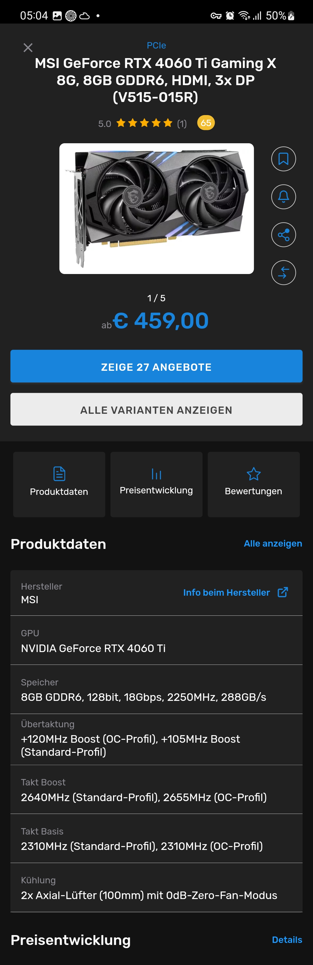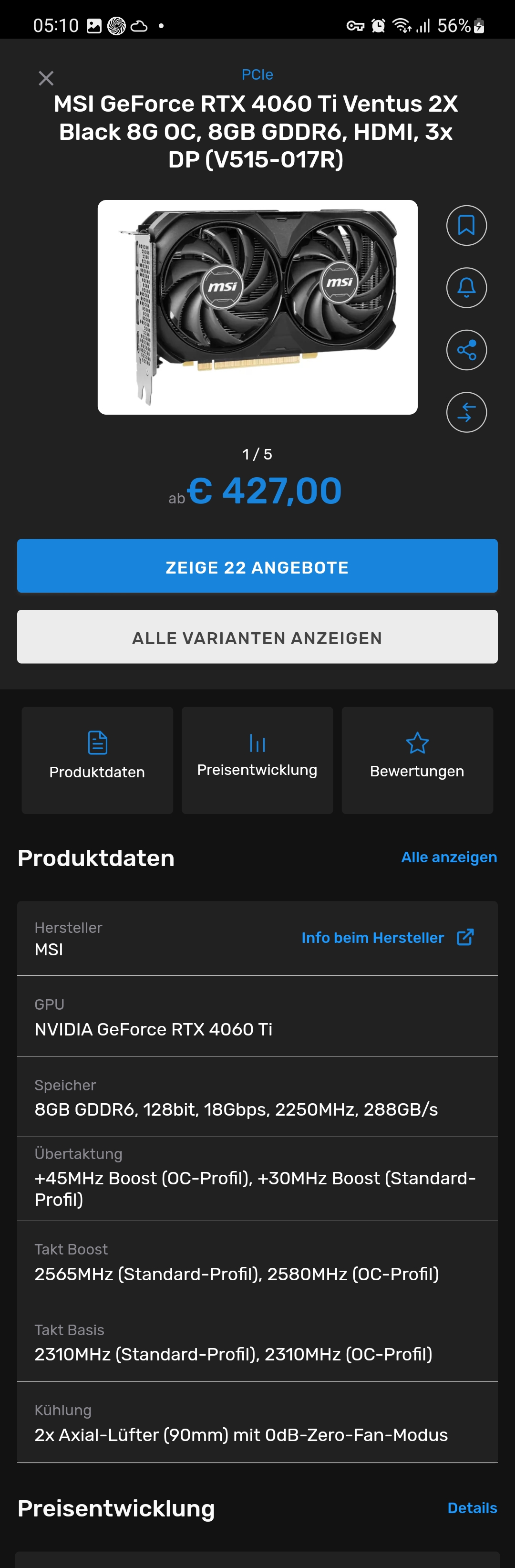 FrankN84 schrieb:Die 4060 Ti sinkt bereits Richtung 400 €, weil der Absatz nicht stimmt. Was ja völlig verständlich ist.