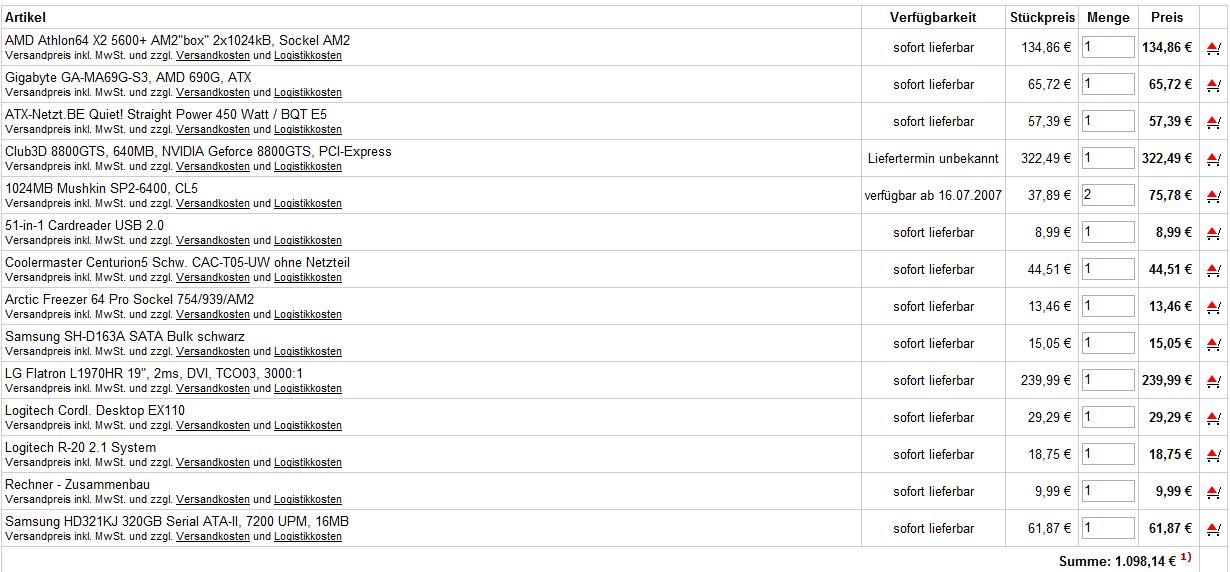 - Monitor extra bestellen (19"er bekommt man schon ab 150€ von Hans.G)