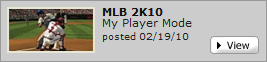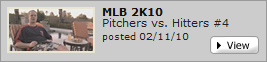 Am 2. März wird übrigens schon MLB 2K10 erscheinen - auch wieder für den PC (+ PSP, PS2, PS3, NDS, XB360). Ich hab die aktuelle Version zwar noch nicht so lang, aber wenn wenigstens die paar Bugs behoben wurden, dann werd ich doch recht zügig umsteigen. Gibt zwar noch nicht viel Ingamematerial zu sehen, aber von der Präsentation/Grafik müsste man mMn auch nicht viel ändern.