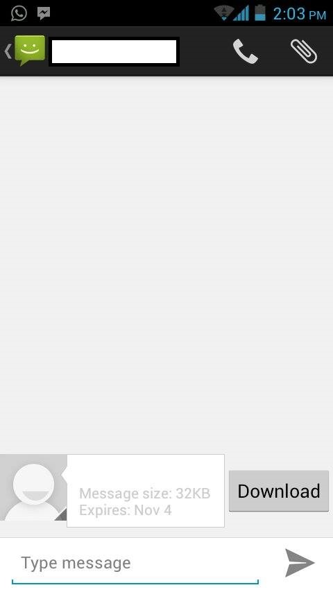 Ich befinde mich derzeit in den USA und habe dort einen Vertrag bei AT&T der mir angeblich 200 SMS und MMS im Monat erlaubt. Jetzt habe ich vor kurzem anscheinend eine MMS (ein Bild) erhalten. Doch anstatt mir das Bild anzuzeigen, bekomme ich nur einen Download-Button, bei dem nichts passiert, wenn man ihn klickt (Screenshot angehängt). Auch mit aktiver Internetverbindung per WLAN nicht.