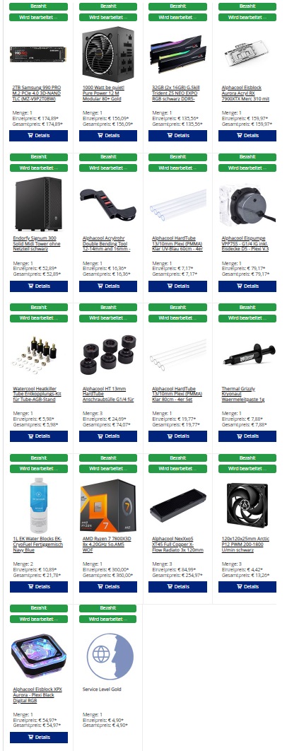 ich frage mich ob die liste so vollständig ist bis auf die distroplate die ich woanders her bekomme..... Einkaufskorb