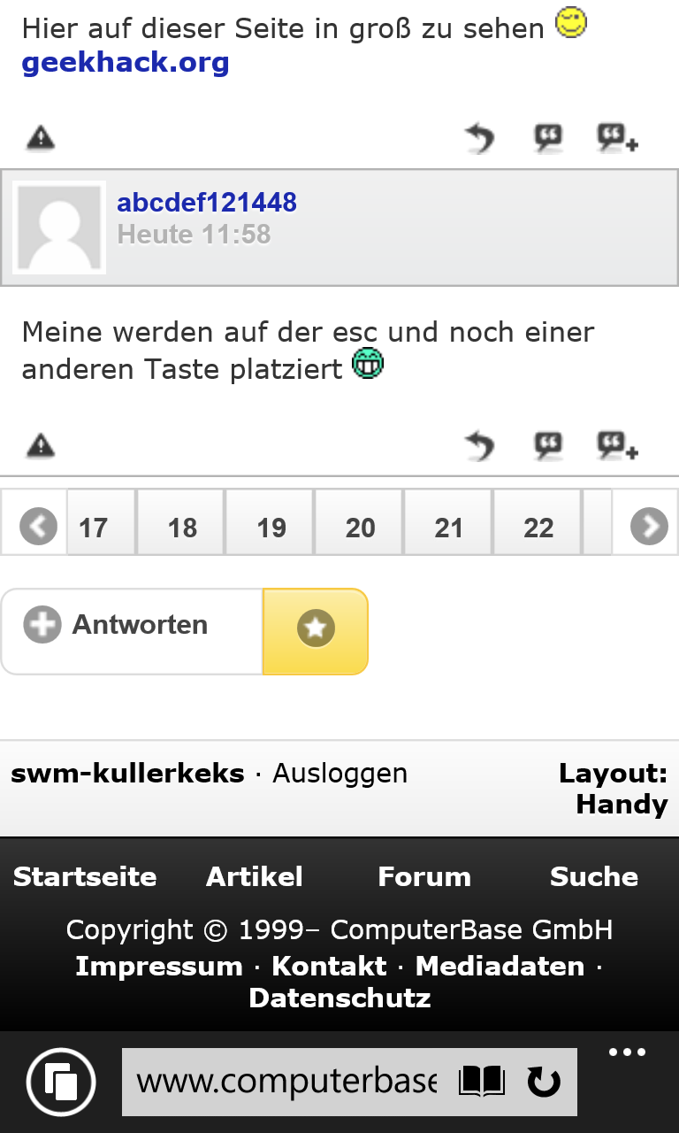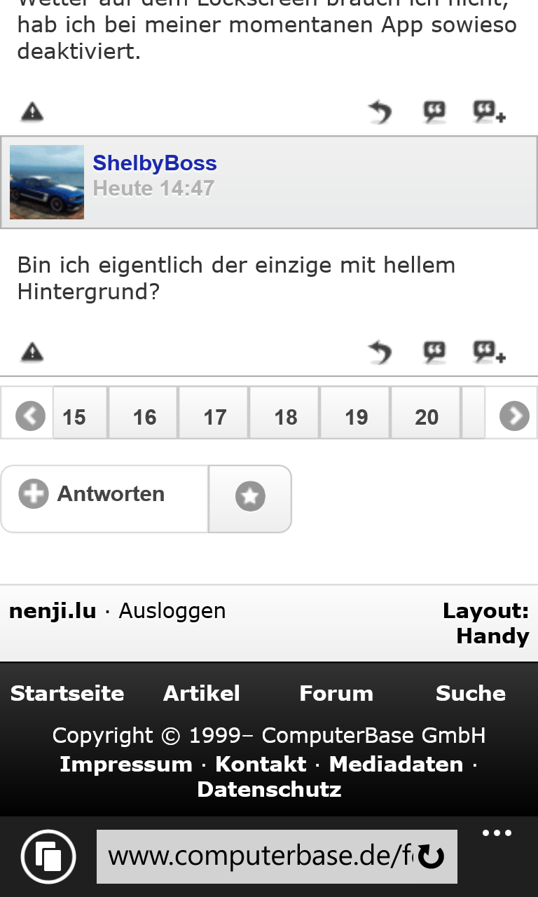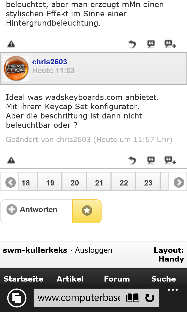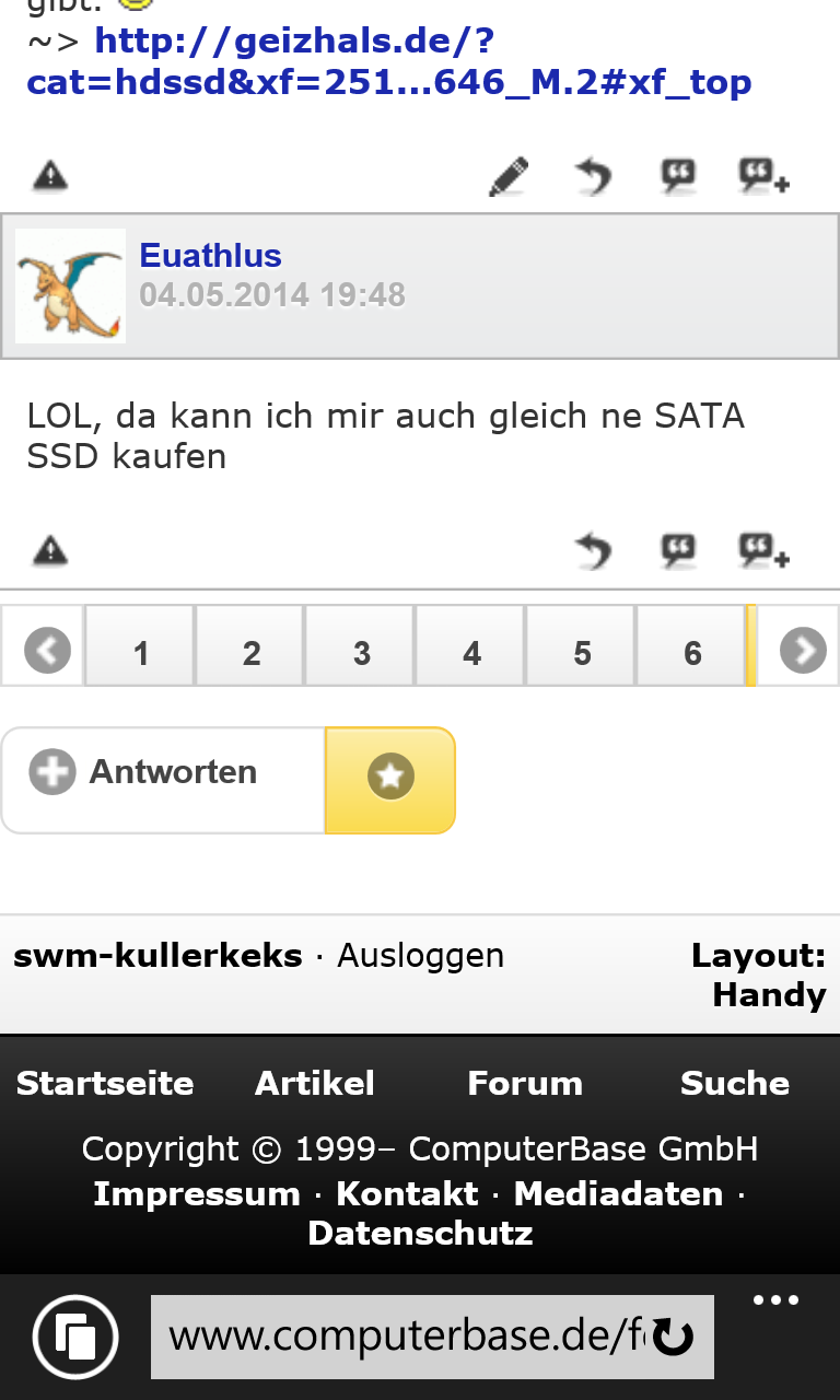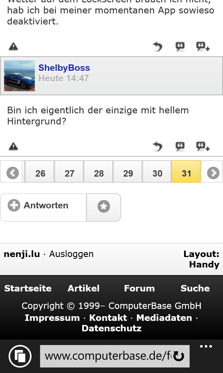 wenn ich beim Mobile Layout ein größeren Thread mit vielen Seiten öffne und weiter nach hinten springe, wird die Seitenanzahl nicht korrekt angezeigt. Da man mit den Pfeilen nur auf die erste oder letzte Seite kommt ist es nicht möglich einfach eine Seite nach vorne oder hinten zu navigieren. Aktualisiert man die Seite, wird es korrekt angezeigt.