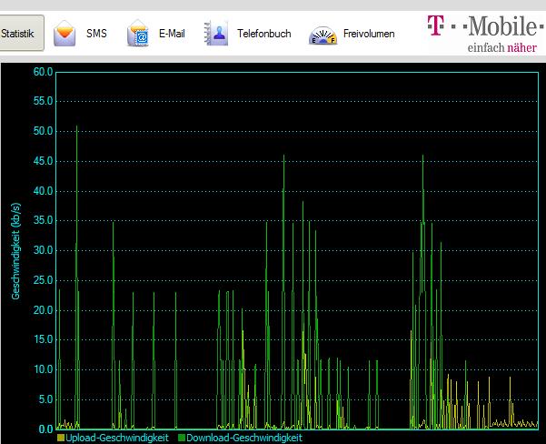 manchmal geht das modem const. zuhause mit über 200 kbit/s, womit er schon zufrieden wär, aber tw. geht es am exakt selben standort nur mit 40 kbit/s und die verbindung bricht immer wieder ein.