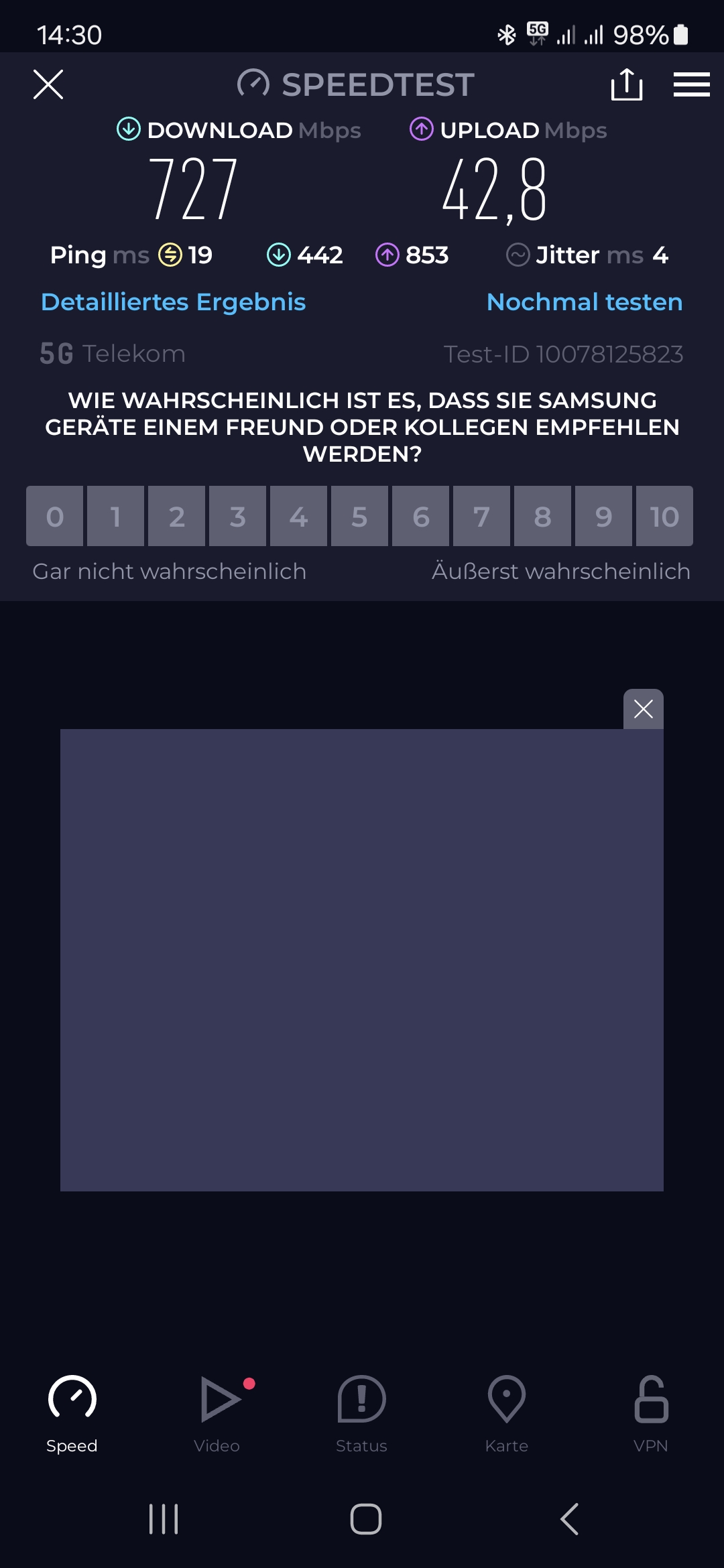 ich habe einen Telekom Mobilfunkvertrag im Download LTE Max/5G wenn ich in der Wohnung im 1oder 2Stock bin und einen Speedtest mache, dann habe ich im Download zwischen 700-800Mbtis....wenn ich allerdings im Hof bin dann hab ich nur so 80Mbits...kann mir jemand sagen wie bzw warum das so ist