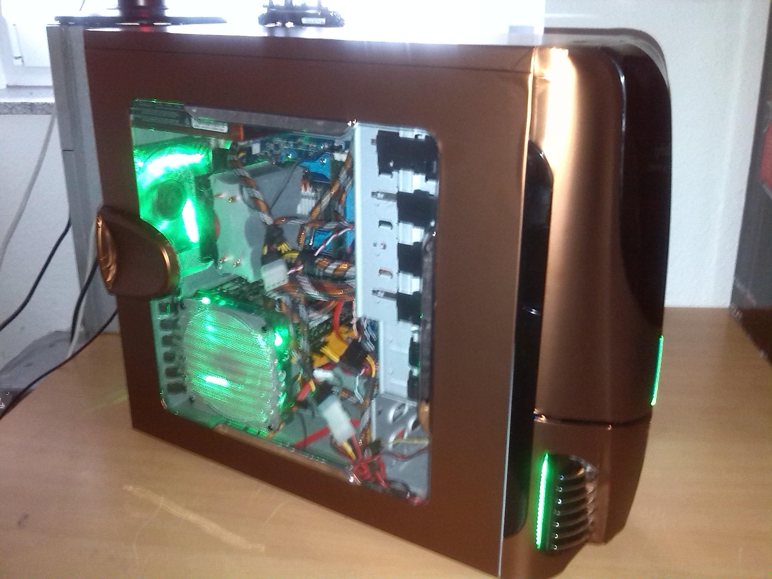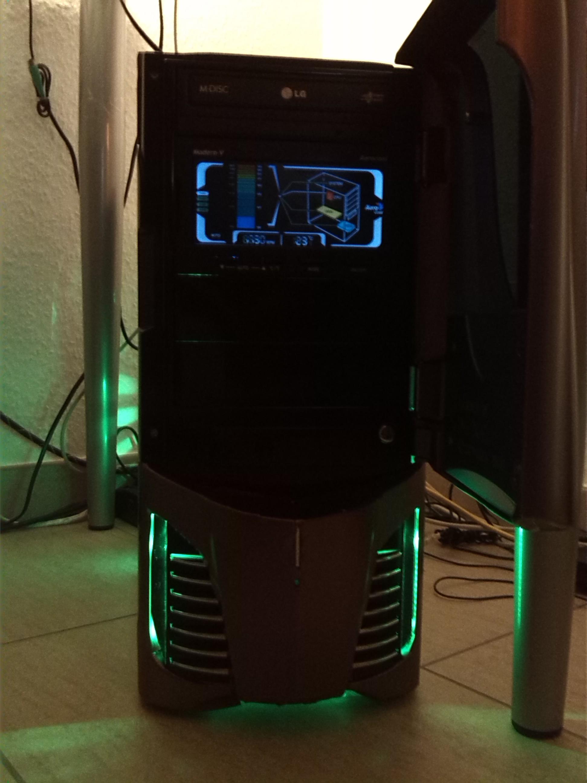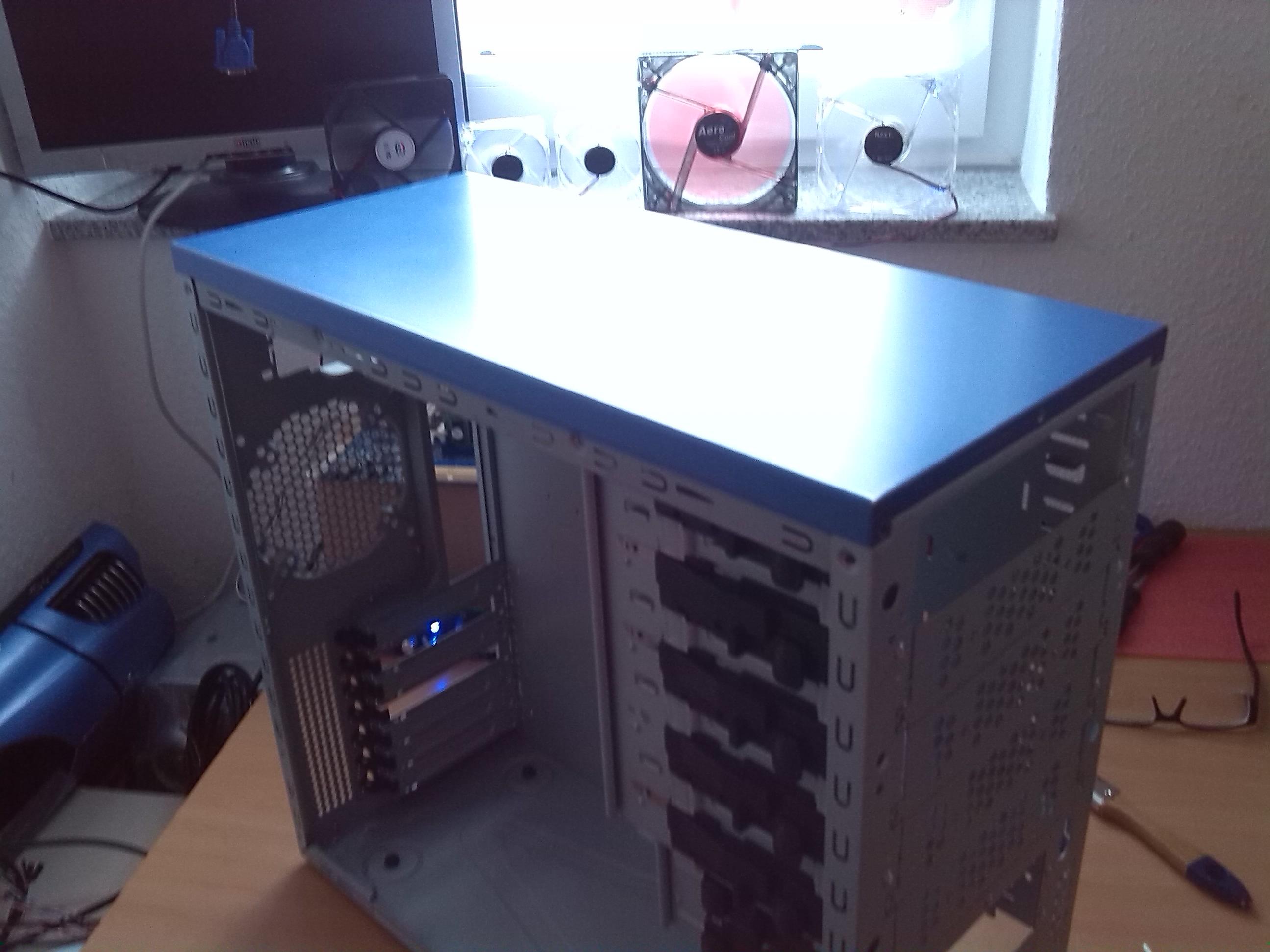 Was jetzt noch getan werden muss, is das ich mich entscheiden muss welche farbe Leds ich gebrauche werden! Habe schon 2 Grüne 120 Bitfenix Lüfter, aber die Front leuchtet noch Blau und jetzt bin ich mir nicht mehr sicher, denn das BLaue vorne mit den Metallic Farbe sieht richtig Cool aus. Na ja, ich werde die kommende Zeit euch hier auf dem laufende halten.