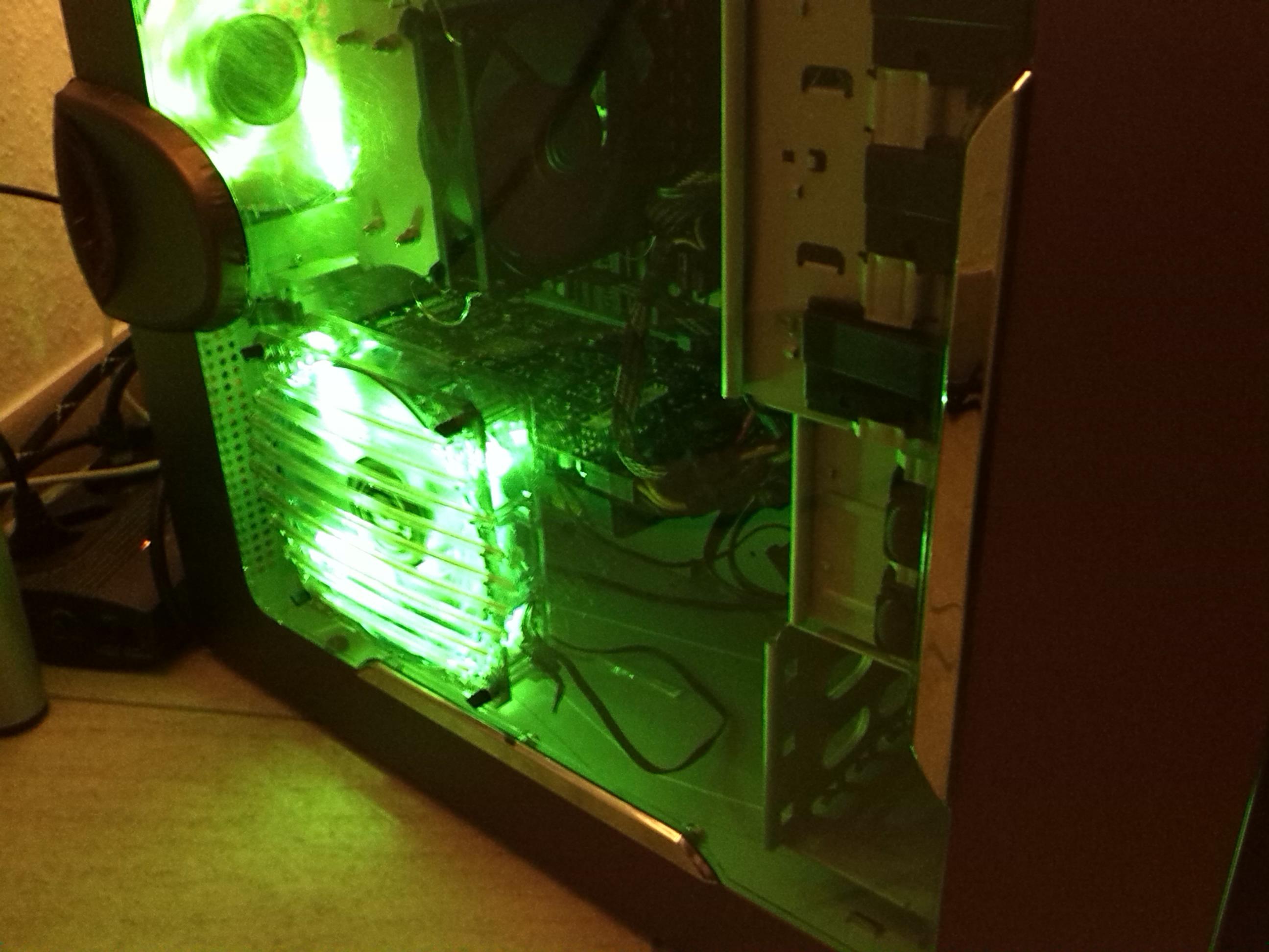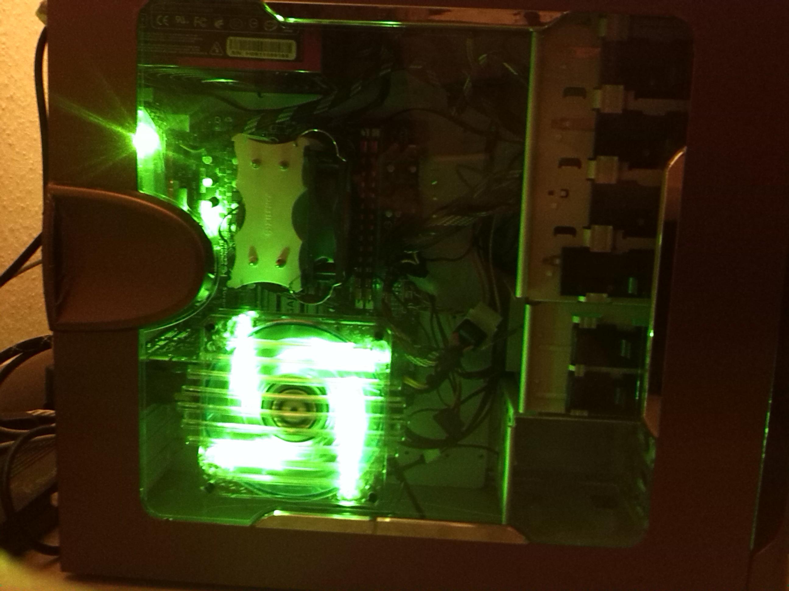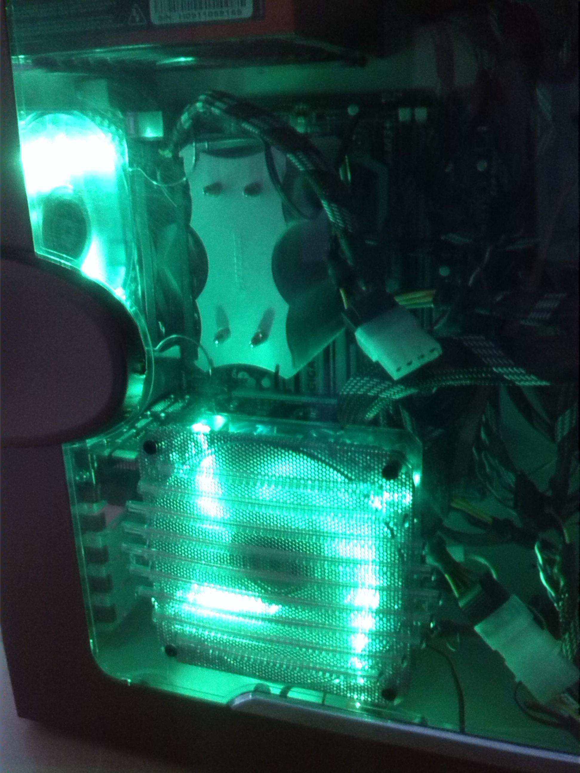 Was jetzt noch getan werden muss, is das ich mich entscheiden muss welche farbe Leds ich gebrauche werden! Habe schon 2 Grüne 120 Bitfenix Lüfter, aber die Front leuchtet noch Blau und jetzt bin ich mir nicht mehr sicher, denn das BLaue vorne mit den Metallic Farbe sieht richtig Cool aus. Na ja, ich werde die kommende Zeit euch hier auf dem laufende halten.