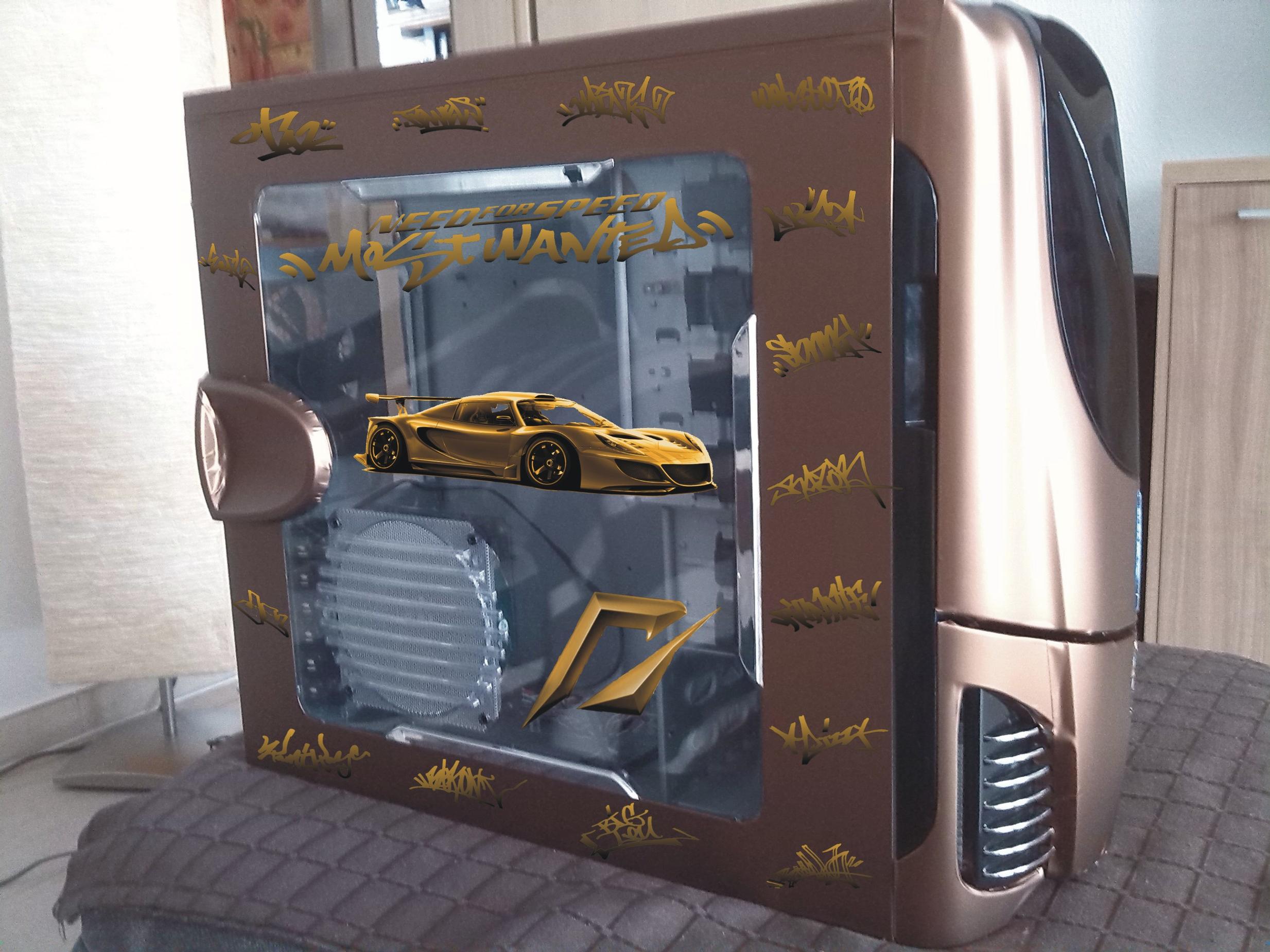 Da ich aber vorhabe von dieses Gehäuse einen "NEED FOR SPEED" styling zu machen. Habe ich folgendes Entworfen um ausdrucken zu lassen um dann aufs Gehäuse anzubringen!