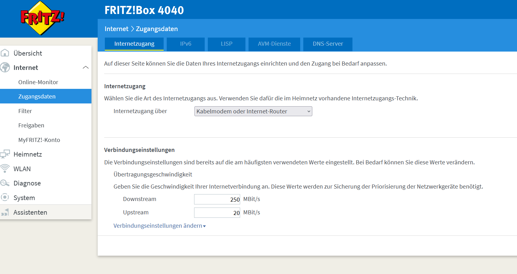 - Wenn ich die Fritzbox anpinge, gibt es kein Problem. Das Problem sollte also zwischen dem WAN Port der Fritzbox und dem Modem liegen