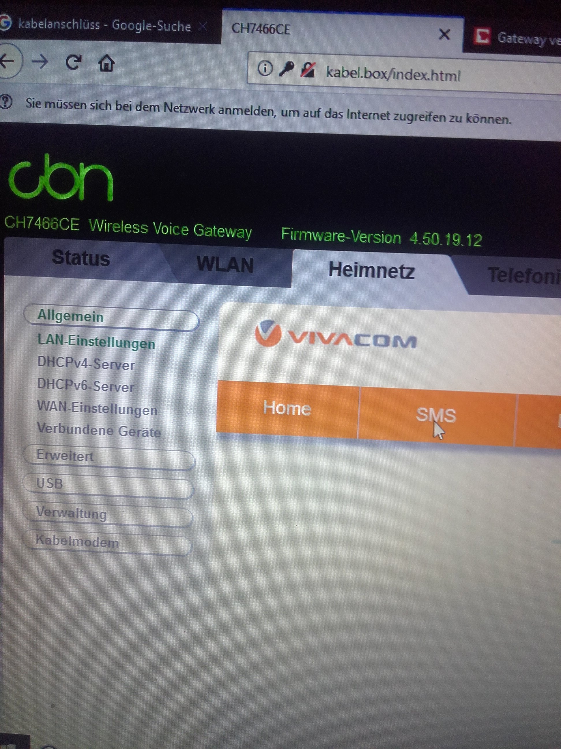 Mit kabel.box komme ich auf die Benutzeroberfläche, jedoch beim jeden Reset (Zurücksetzen auf Werkeinstellungen) kommt wieder 198.168.1.1 3G Wireless Gateway B68L (Vivacom) statt 192.168.0.1 CBN (Kabel Deutschland). Es ist egal ob ich über LAN oder WLAN mich verbinde, es ist das Gleiche. Oft erscheint auch Vivacom auf dem Routers Benutzeroberfläche obwohl ich mich erfolgreich mit bei CJ7466CE wireless Voice Gateway eingelogt bin.