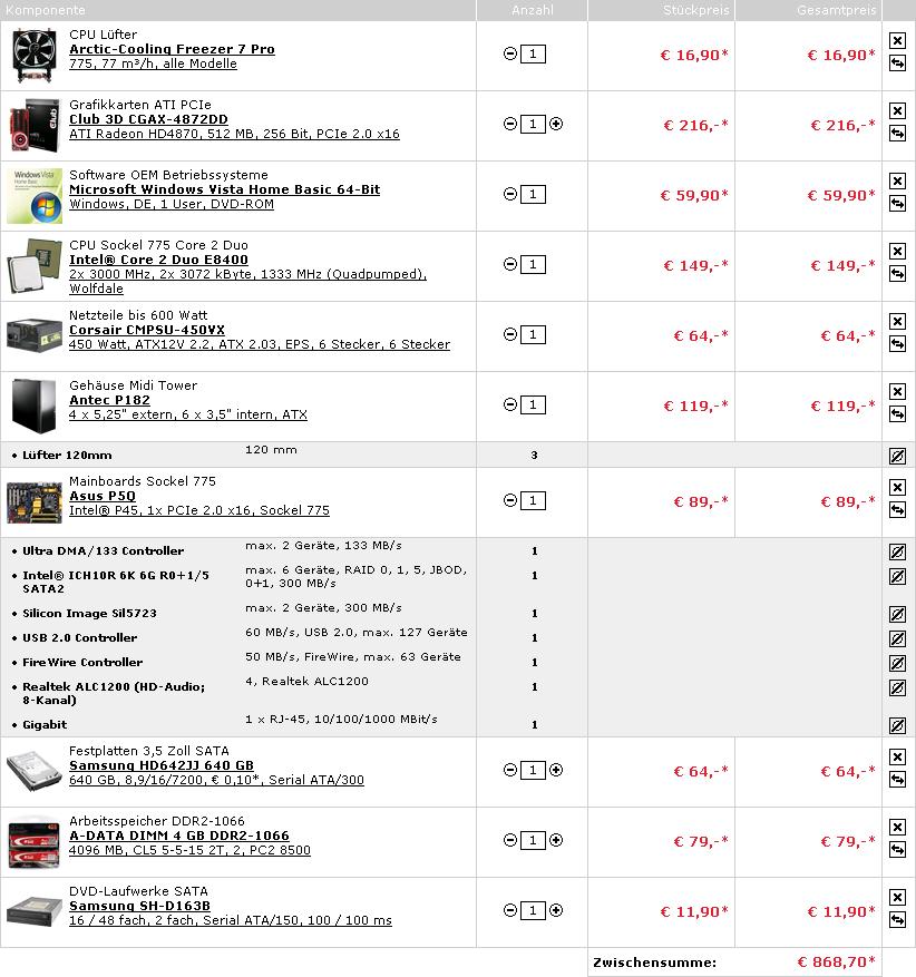 P.S.: Suche dir einfach mal einen "passenden" PC raus und konfiguriere mal, was du brauchst. Wenn du eine Komponente drin haben willst, die nicht anwählbar ist.... 1 Anruf genügt und es wird gleich anwählbar gemacht mit gutem Preis