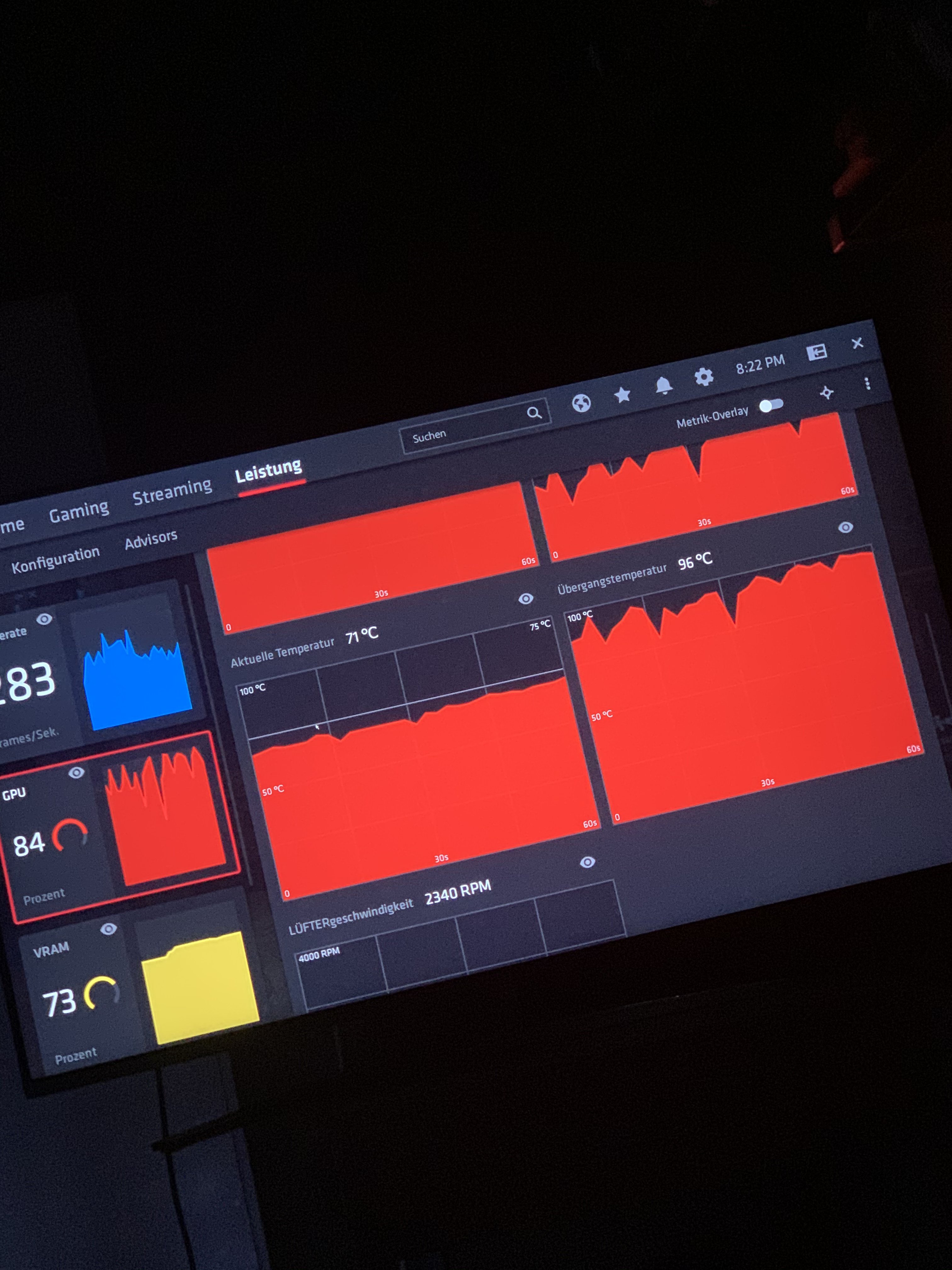 und obwohl ich 3 Meter vom pc entfernt bin, höre ich starkes fiepen/rattern was aber nicht von den Lüftern der Grafikkarte kommt sondern wirklich vom gpu Einheit.