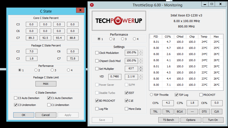 Ich habe mir dann vor einiger Zeit und viel Recherche, einen neuen Server mit Xeon E3-1230v3 [1] (dort gelistete Festplatten kamen später hinzu) gekauft. Ich war schon echt angetan als ich feststellen musste, dass der Server nun nur noch 76 Watt verbraucht hat - das war ein sehr großer Sprung. Es kann auch sein, dass ich ab dann den Server nachts abgeschaltet habe. Da der LSI RAID Controller in seiner RAID-Controller-Funktion mehr Probleme mit meinen Daten verursacht hatte als der mechanische Zustand der Festplatten selbst bin ich in meinem Stromsparwahnsinn irgendwann dazu übergegangen und habe die 7 Festplatten in jeweils eine pro Nutzungszweck eingetauscht (OS, Daten, Hyper-V VHDs). Durch den Wegfall der erstens alten Festplatten und zweitens der Vielzahl an Festplatten und des RAID-Controllers, verbraucht der Server auch nur noch 45-50 Watt.