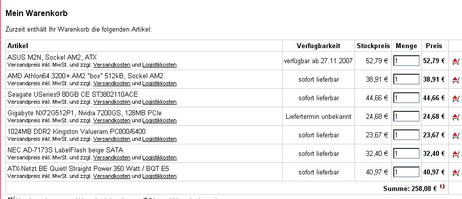 Meine Mutter brauch einen neuen PC, da der alte den Geist aufgegeben hat. Sollte nun natürlich keine Billigware verbaut sein, aber er braucht halt nur das Nötigste, da meine Mutter ihn eigentlich nur fürs surfen im Internet und gelegentliche Office-Anwendungen und 2-D-Spiele benutzt. Da kommen wir auch schon zum Problem: Die Grafikkarte. Nur Onboard oder eine billige Grafikkarte? Hab trotzdem mal was zusammen gestellt, wäre schön wenn ihr es euch anschauen könntet und ggf. Verbesserungsvorschläge posten. Gehäuse, Monitor, Tastatur etc ist alles vorhanden, nur der das Innenleben des Gehäuses fehlt.