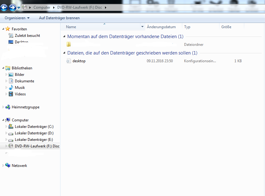 ich möchte eine DVD brennen, als Daten DVD mit einem Ordner.
