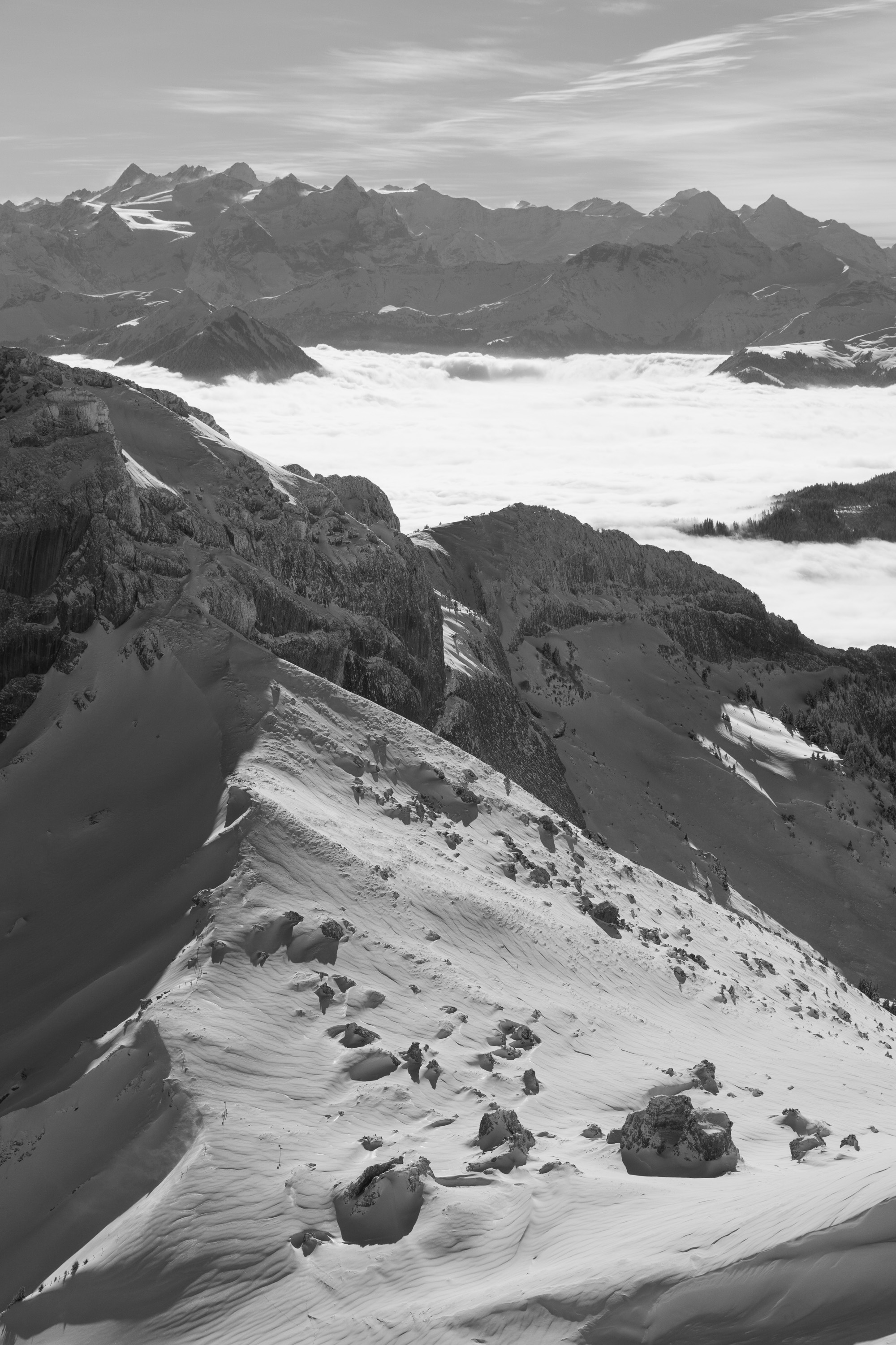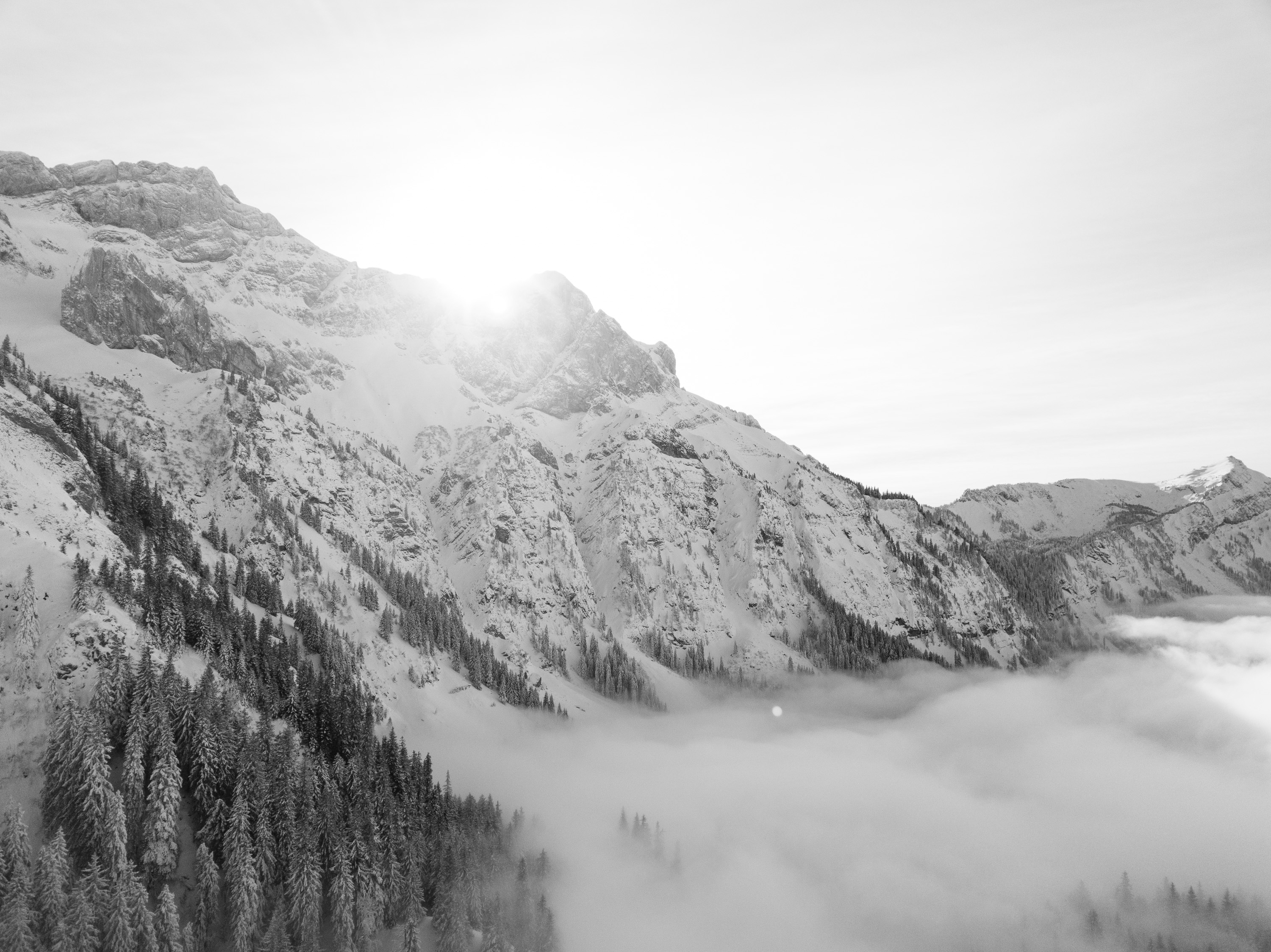 Das Rauschen kommt mit Sicherheit zu einem sehr großen Teil vom vorherrschenden Nebel/Dunst... bei solchen Witterungsbedingungen kannst du quasi keine rauschfreie Aufnahme erstellen (wenn sie noch authentisch wirken soll). An den Ästen am Baum Links sehe ich nichts ungewöhnliches... sehen für mich normal aus... die Blätter wirken etwas blass, was aber am S/W-Effekt liegen könnte, wodurch der grüne Kanal wohl etwas unter geht, aber das stört mich persönlich in dem Fall überhaupt nicht weil viel zu unwichtig im Gesamteindruck.
